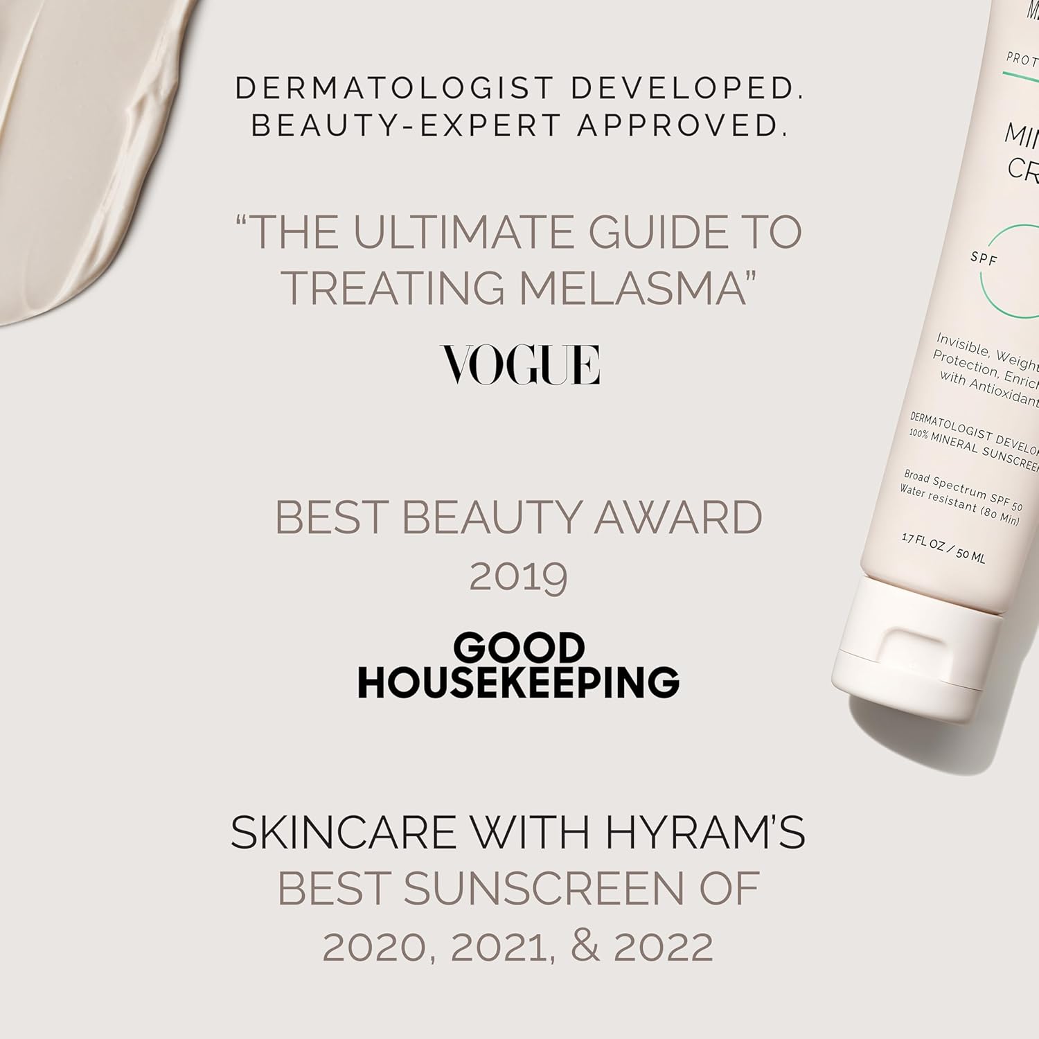 MDSolarSciences Mineral Crème Sunscreen SPF 50 | Water-Resistant, Broad Spectrum UV Protection | Zinc Oxide Formula with Antioxidants | No White Cast, Sheer Matte Finish for All Skin Types (1.7 Fl Oz)