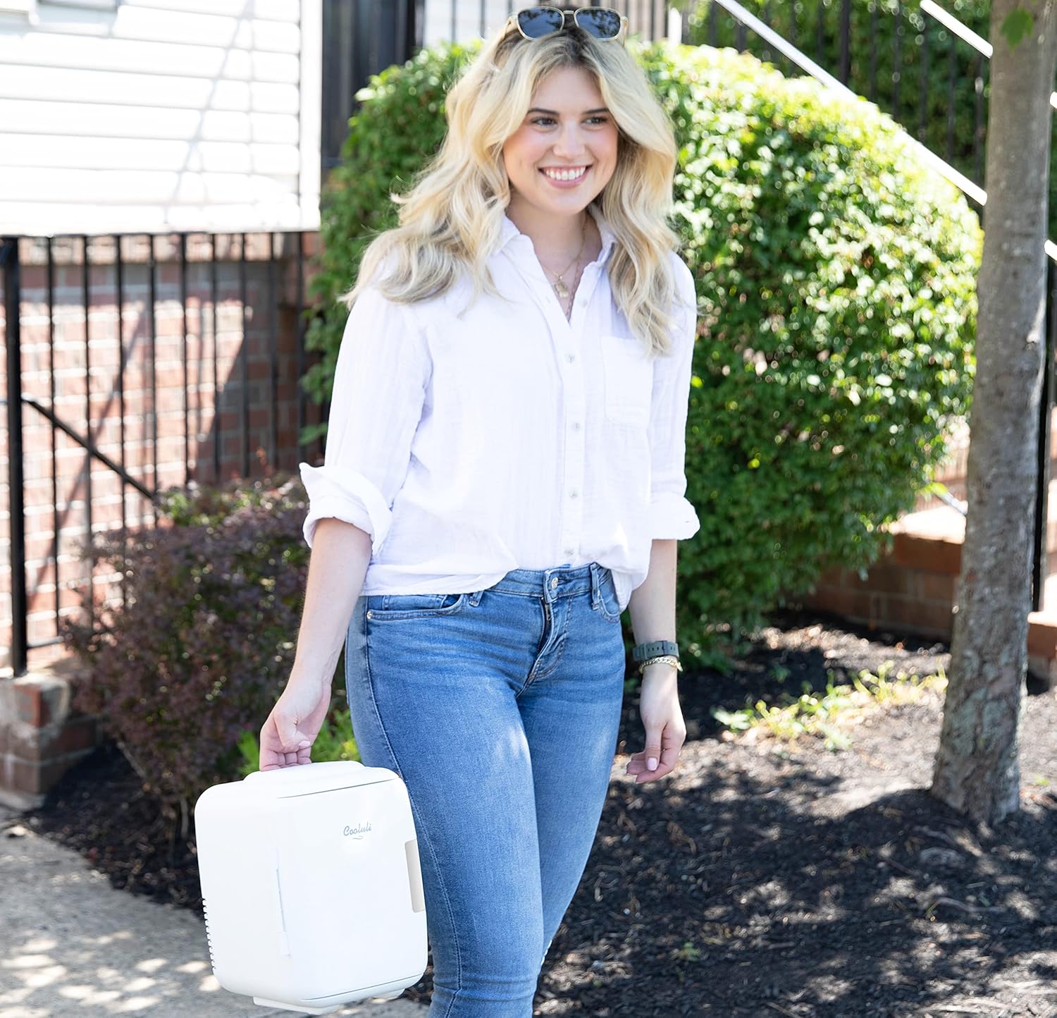 - SLEEK, DURABLE DESIGN: The Cooler & Warmer has a beautiful matte finish on the outside. Sleek enough to leave at home or in the office – fits perfectly on your desk. Simply wipe it down to clean the inside and outside. The lightweight, sturdy polypropylene (PP) plastic design and magnetic self-lock latching door along with included DC adapter makes the Cooler/Warmer portable. The carrying handle on top makes transporting the appliance even more convenient.