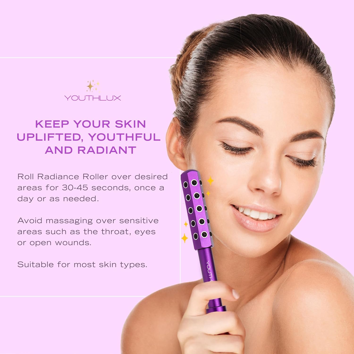 Radiance Roller – Germanium Stone Facial Massage Tool for Lifting, Sculpting, De-Puffing, Glow Boost, Energizing & Cooling Effect (Purple)