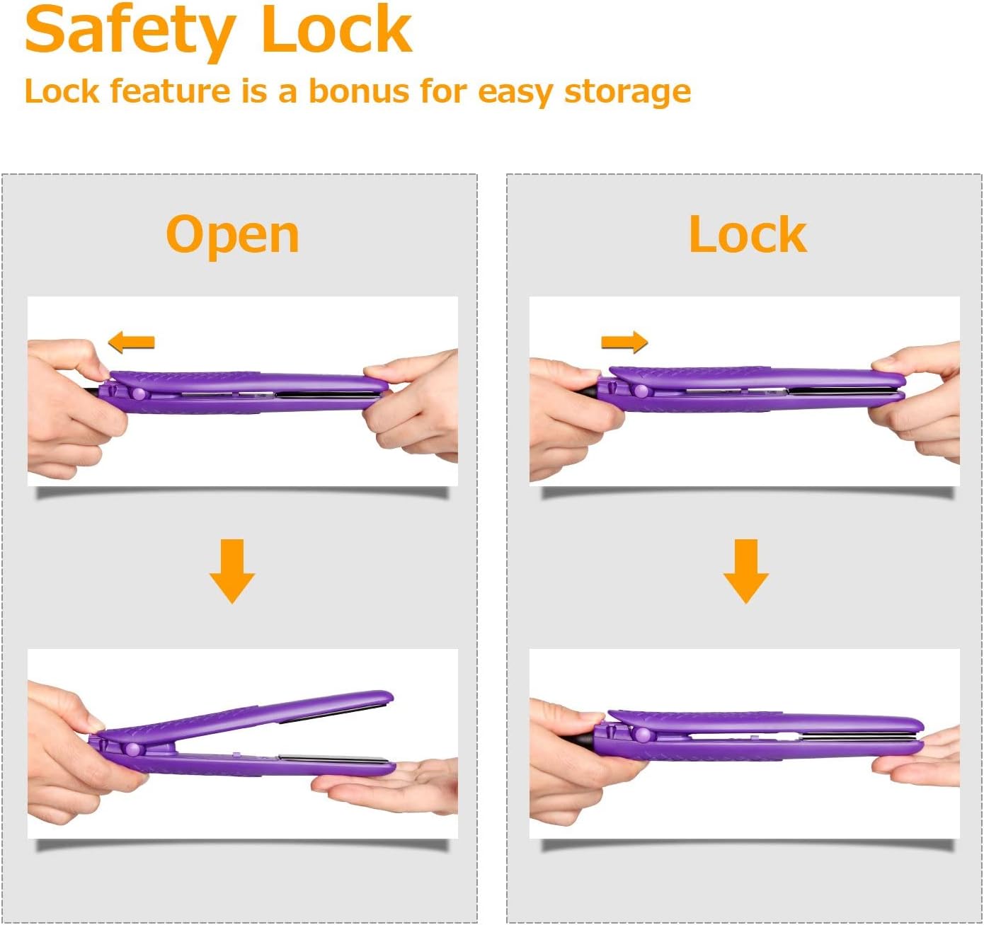- [Compact and Portable] Mini hair straightener is only 0.7 inches wide and weighs only 0.35 pounds. This mini flat iron for short hair features a safety lock for extra storage space. The compact size makes it easier to store than regular travel hair straightener, making it an ideal travel choice.
