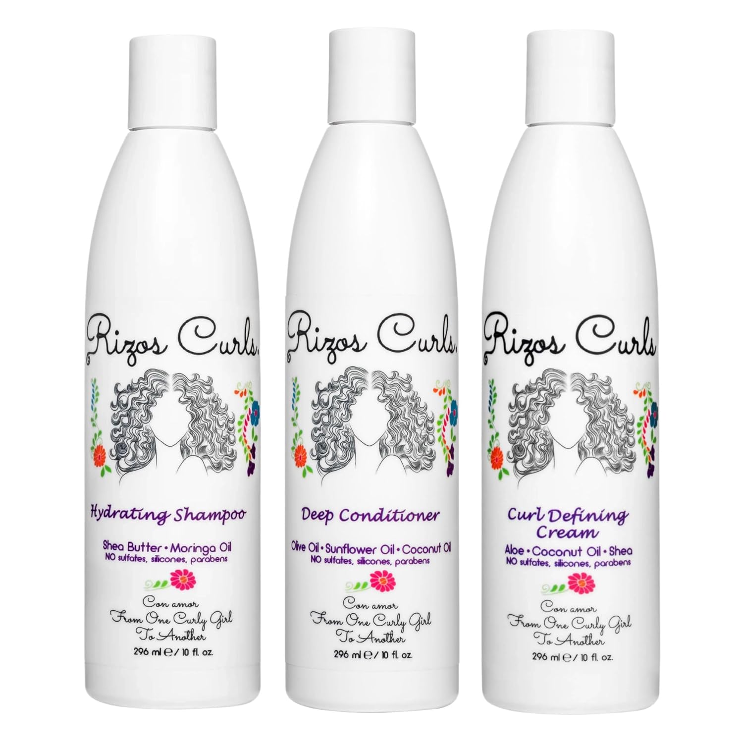 Rizos Curls Trio Bundle, Hydrating Shampoo & Deep Conditioner & Curl Cream Bundle, Gently Cleanse and Hydrate Curly Hair, Style & Define Curls for Frizz Free Volume, For All Curl Patterns 2a - 4c