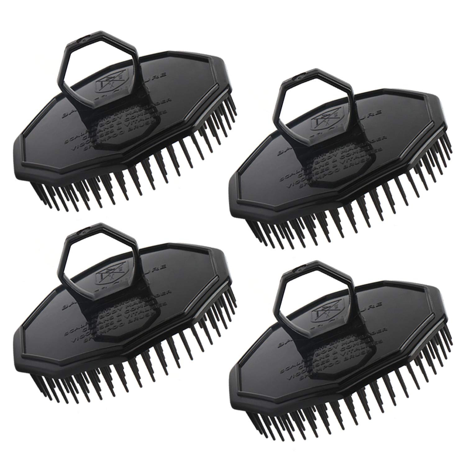 Scalp Massage Shampoo Brush, Segbeauty 4pcs Massage Hair Brushes Floriated Shower Comb for Deep Cleaning Hair Men's Hand Brush Growth Beard Brush Pet Grooming Brushes (Black(Ringed Handle))