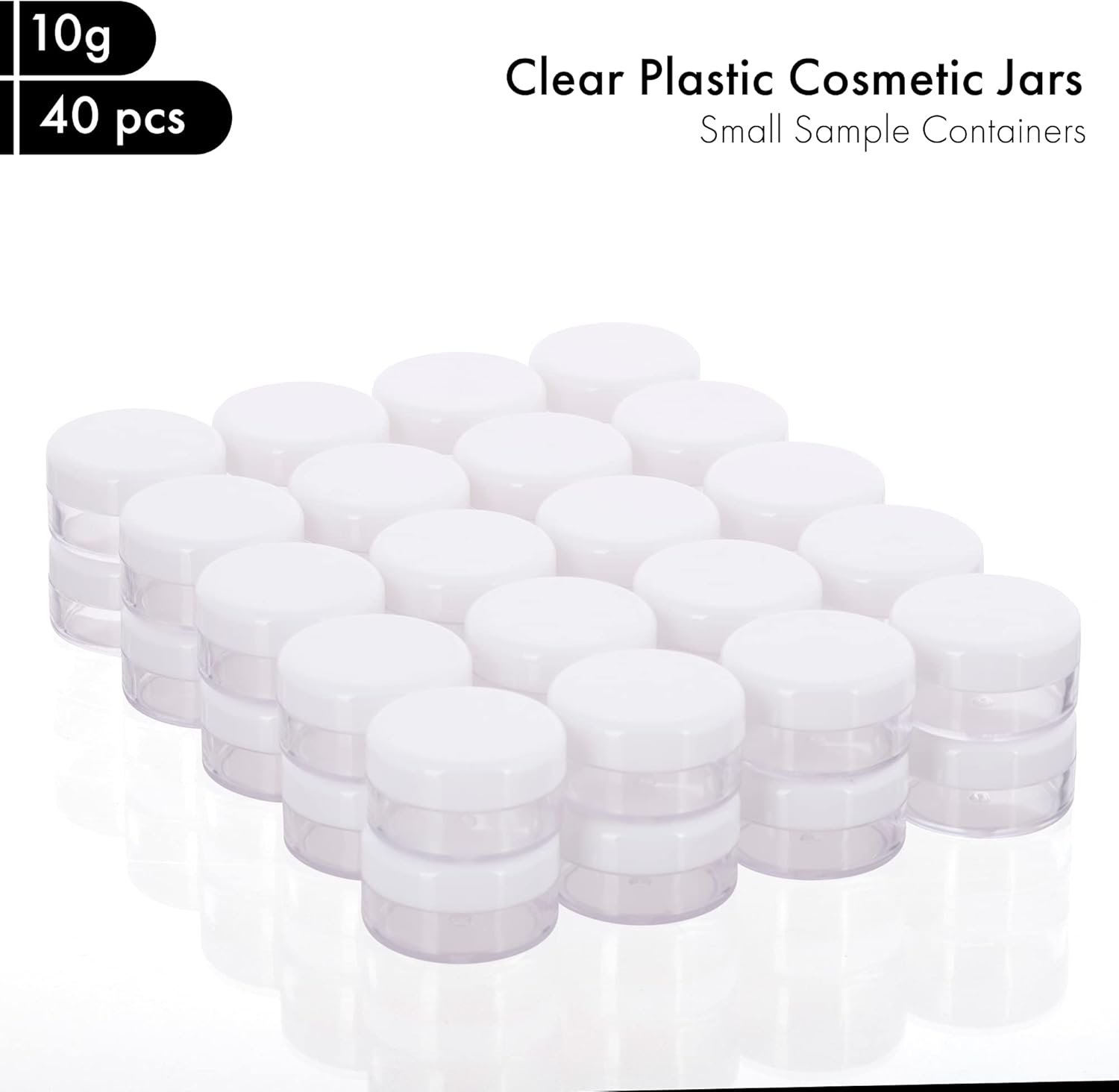 40Pcs 10 Gram Plastic Cosmetic Containers with Lids for Lotion, Creams, Toners, Lip Balms, Makeup Samples Jars BPA free (10g-40pcs, white)