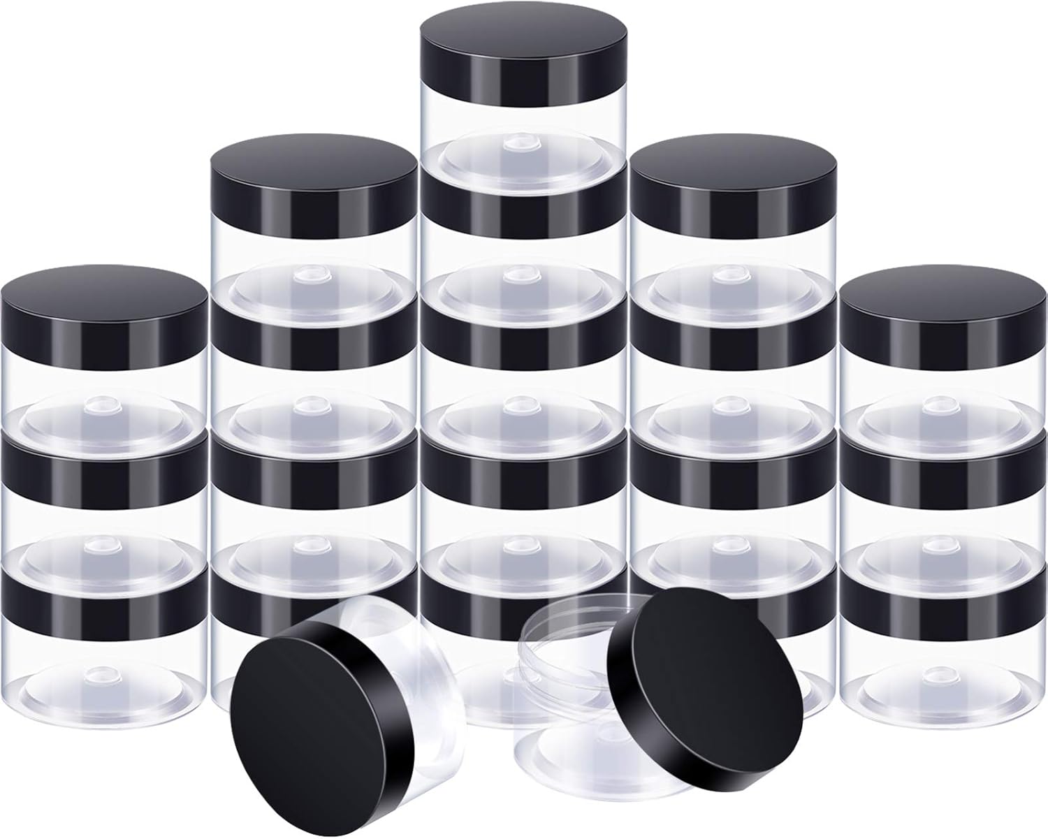 SATINIOR 24 Pieces Empty Clear Plastic Jars with Lids Round Storage Containers Wide-Mouth for Beauty Product Cosmetic Cream Lotion Liquid Butter Craft and Food (Black Lid, 6 oz)