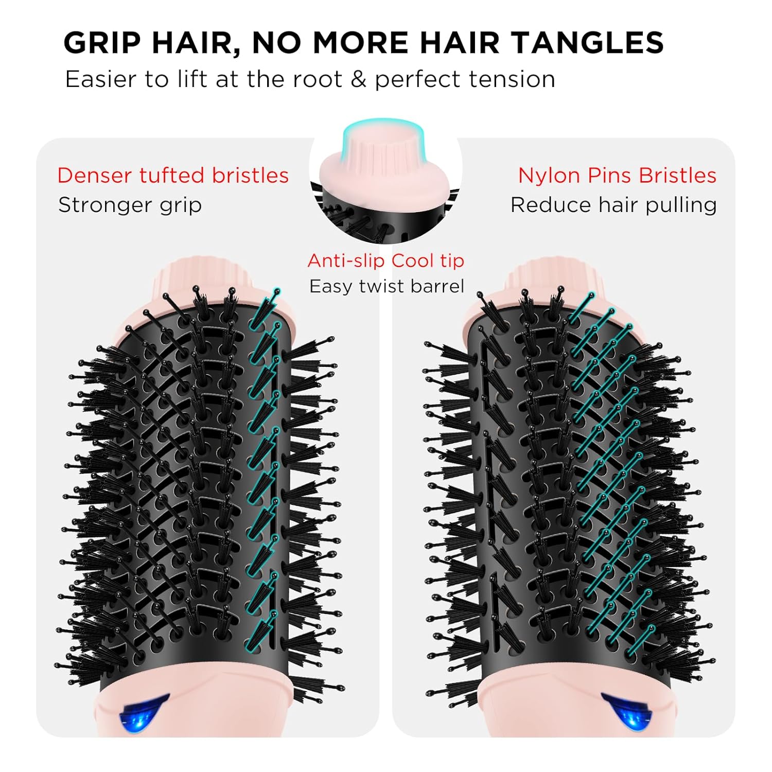 - 4-IN-1 MULTIFUNCTIONAL DRYER: Do you know how it can be tricky to hold a blow dryer in one hand and use your brush to style your hair with another? Hot air brushes aim to make that process easier. They are essentially 4-in-1 tools that combine the functions of blow dryer brush, hair curler, and hair straightener. So our hot air brush are great for those who change hairstyles frequently, but also those who need to look perfect for a special occasion.