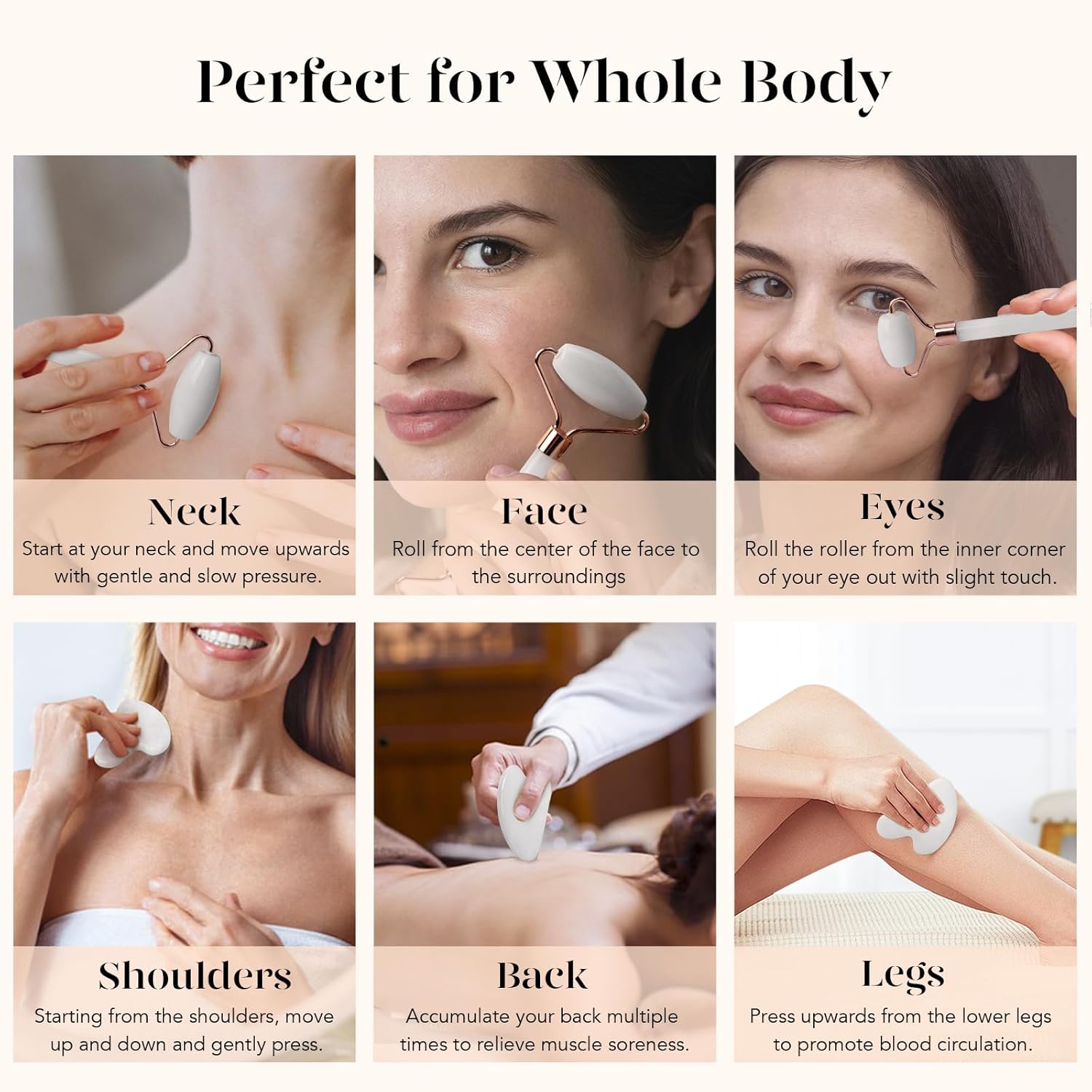 - [Elegant Packaging] The face roller and guasha packaged in a beautiful gift box, it also be used as self care gifts for women. We suggest you wash the skincare tools for face after and before each use