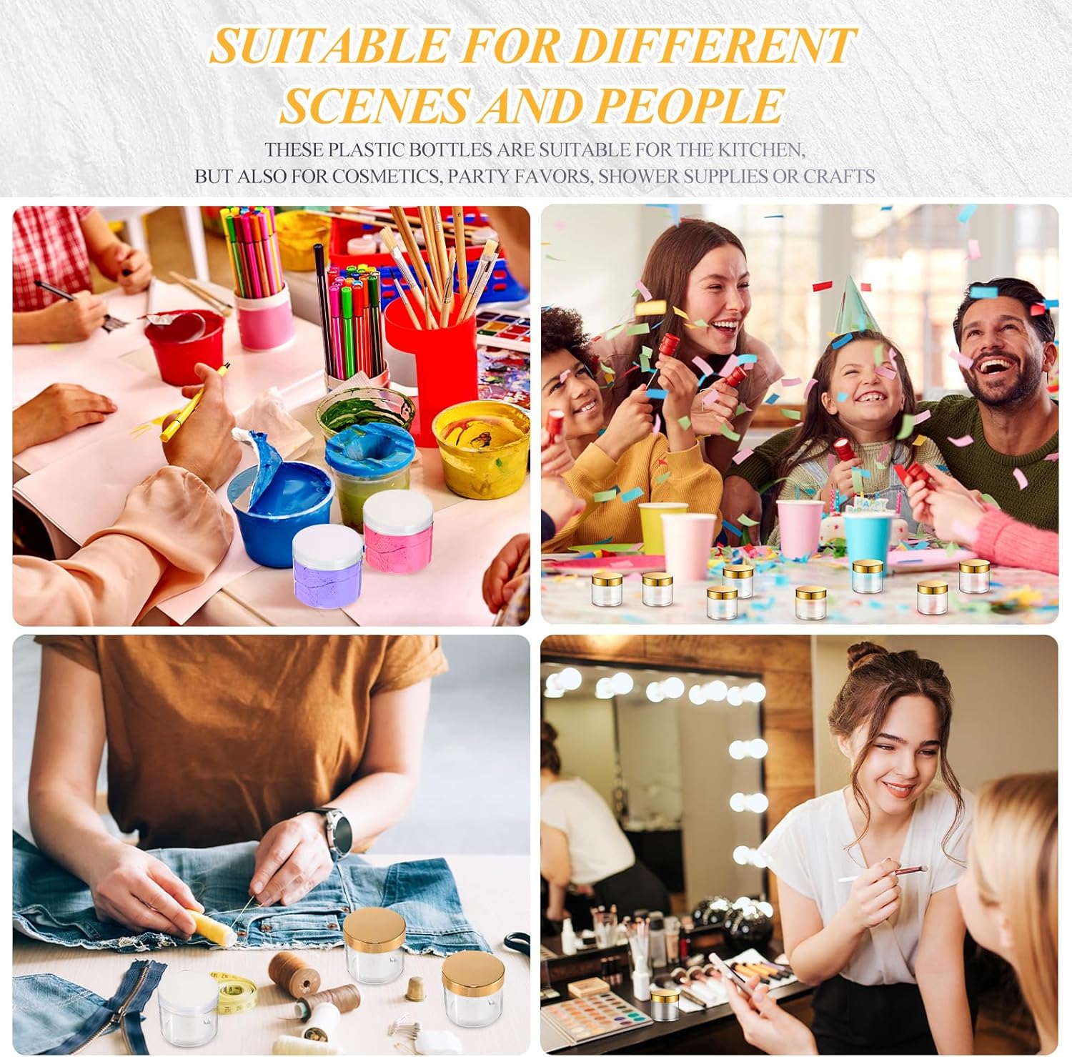 - Multi-functional container: good way to store your homemade cosmetic, body lotion, moisturizers, face masks, specimen collection, putty, lotions, fragrances, DIY slime, party favors, or other crafts, good tools in daily life