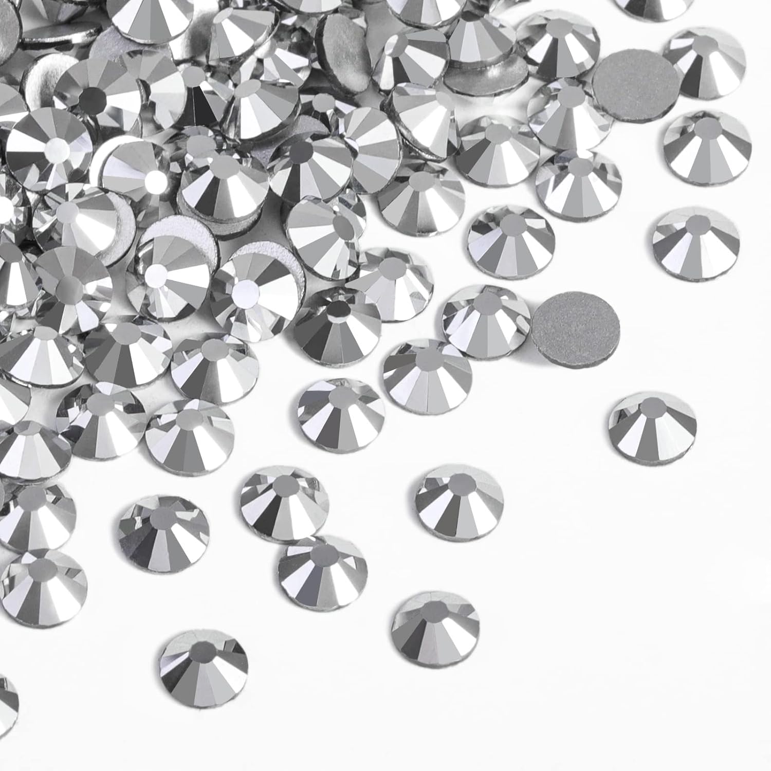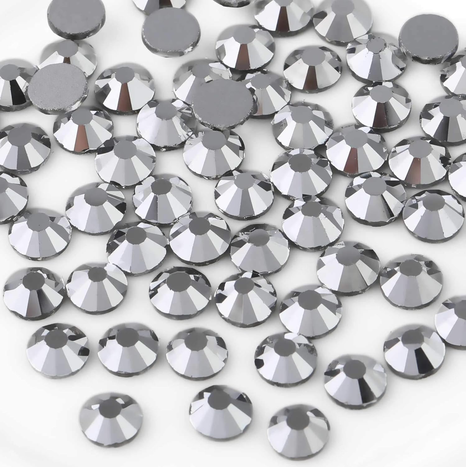 beadsland Flat Back Crystal Rhinestones Round Gems for Nail Art and Craft Glue Fix, Silver Hematite (2.9-3.0mm) SS12/1440pcs