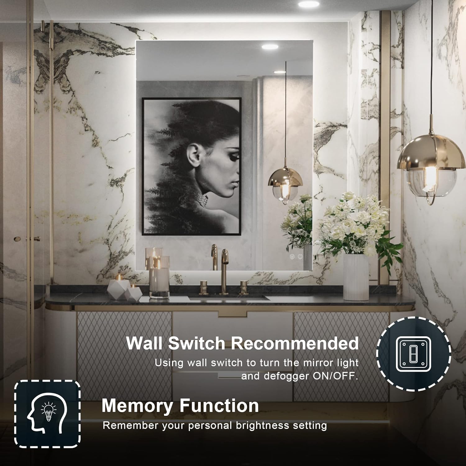 - ✨【Perfect bathroom mirror】-U.S Design Environmental Friendly,Copper free HQ Silver coating glass with IP54 waterproof LED ensures 100% safety in wet bathroom.