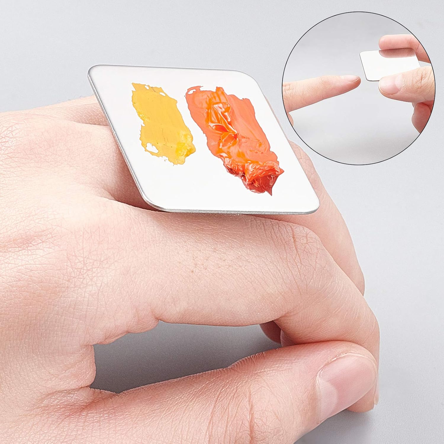 - Package & Size--Here come with 4pcs finger ring palette and 2pcs palette spatulas, palette size about 1.7 x 1.3 inch (4.3x3.3cm), they are small and portable, itβs convenient to take anywhere.