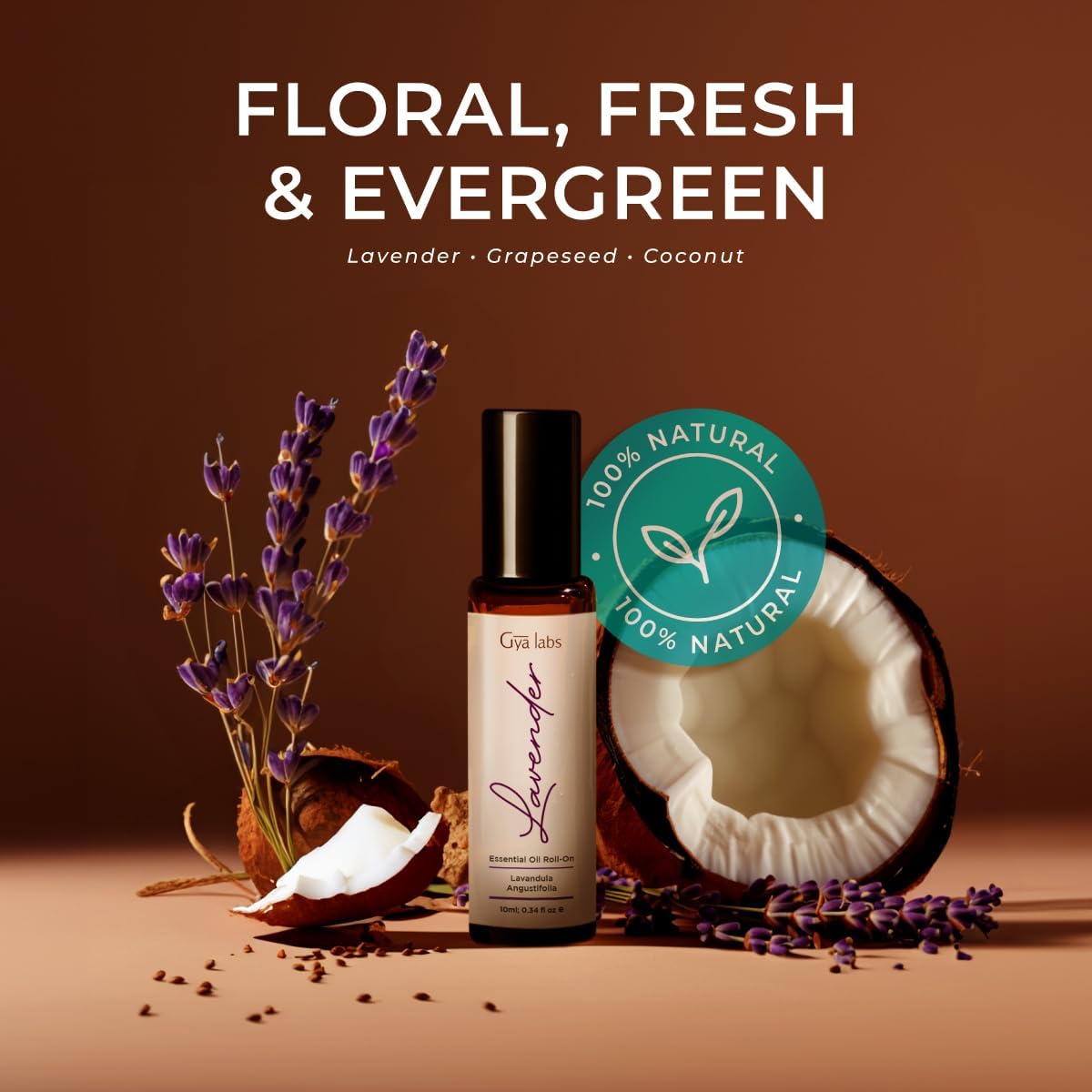 Gya Labs Lavender Essential Oil Roll on - 100% Pure Natural Lavender Perfume Oil for Women, Skin - Relaxing Aromatherapy, Alcohol-Free Perfume Roller, Travel Size (0.34 Fl Oz)