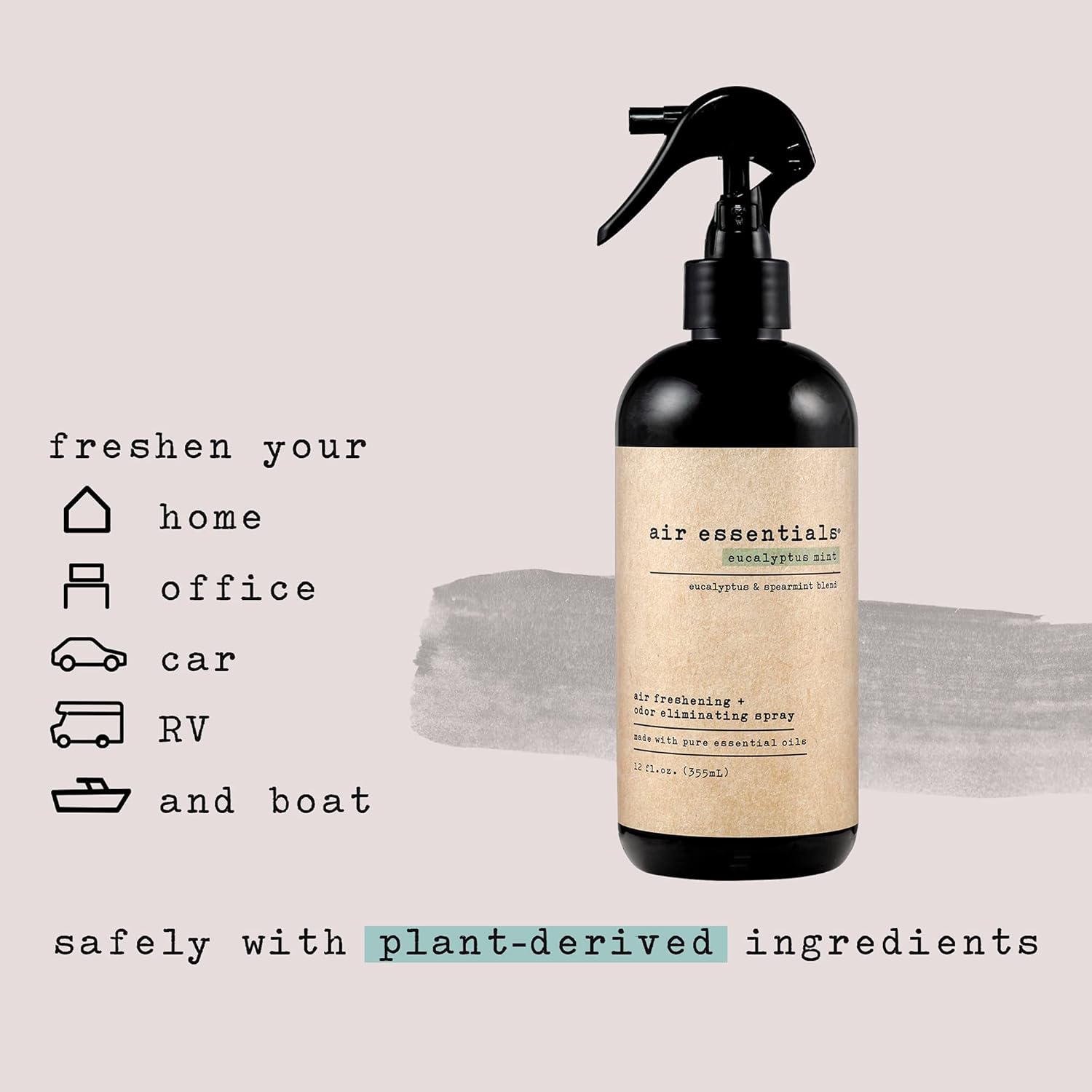 - MADE IN THE USA - Air Essentials Air Freshening Spray does not contain parabens, sulfates, dyes, synthetics, alcohol or phthalates. Every bottle is proudly Made in the USA and is formulated with plant derived ingredients. Eucalyptus Mint is a blend of eucalyptus and spearmint essential oils.