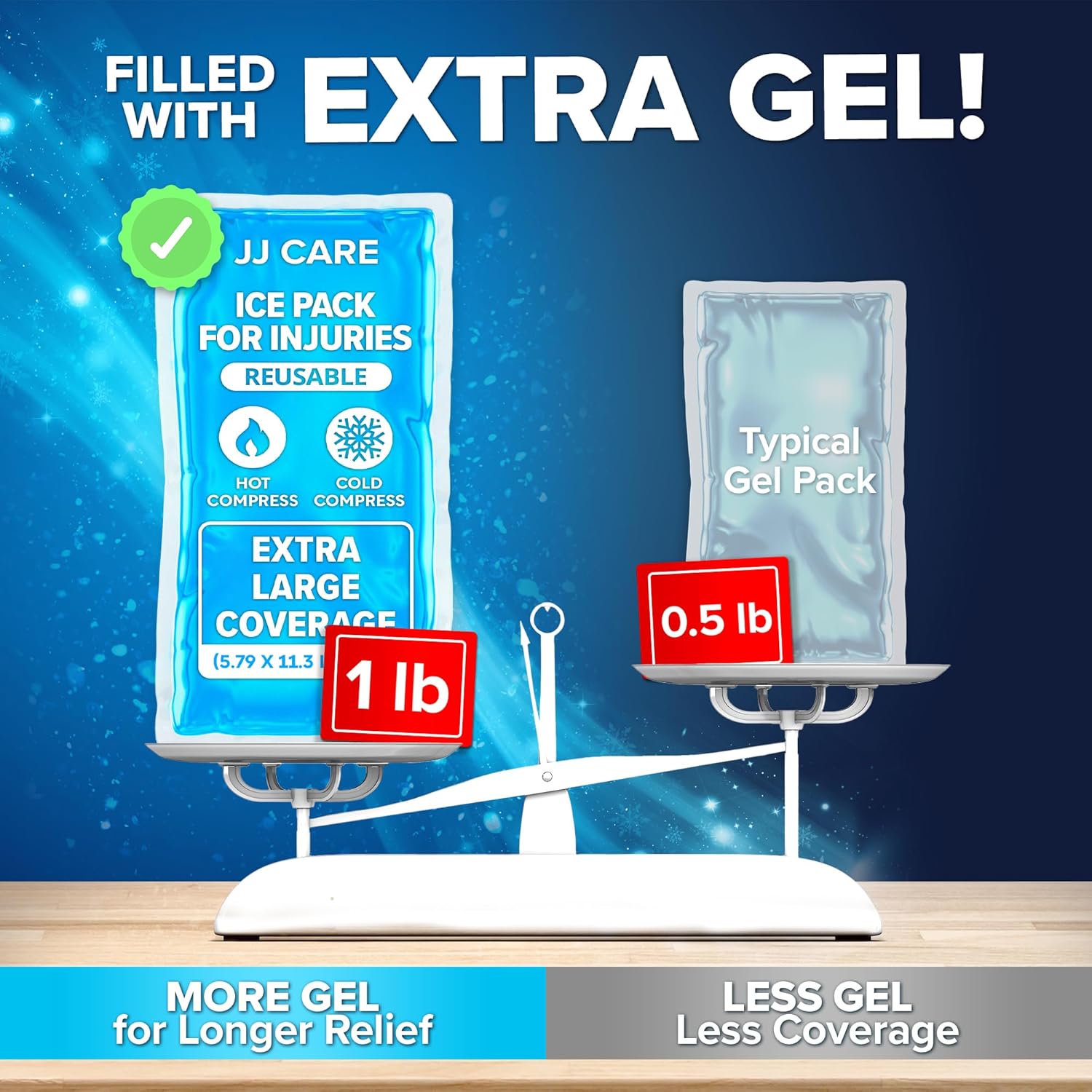 - ā Value For Money - JJ Care's reusable ice pack for injuries quality was never compromised. This Gel Ice packs for Injuries Reusable large type has been crafted in the best possible size for so you can use it for any body parts you desire