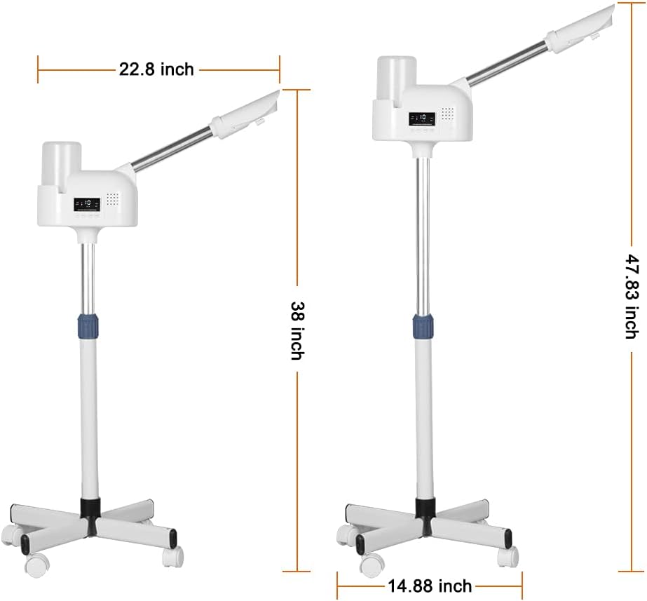 Upgrade Professional LCD Facial Steamer with Hot Mist, Esthetician Steamer for Salon Spa & Home, Stand Facial Steamer On Wheels, 33.8oz Large Upper Inlet Cup & 50s Fast Heating