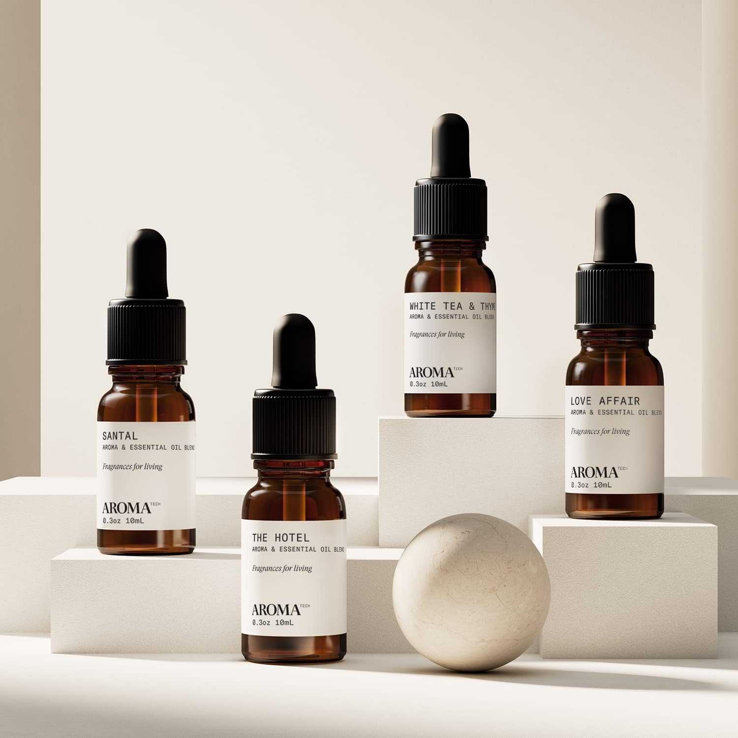 AromaTech The Bestsellers Set | Gift Set of Aroma Diffuser Essential Oils Blend of Santal, The Hotel, White Tea & Thyme, and Love Affair - 10 mL (4 Pack)