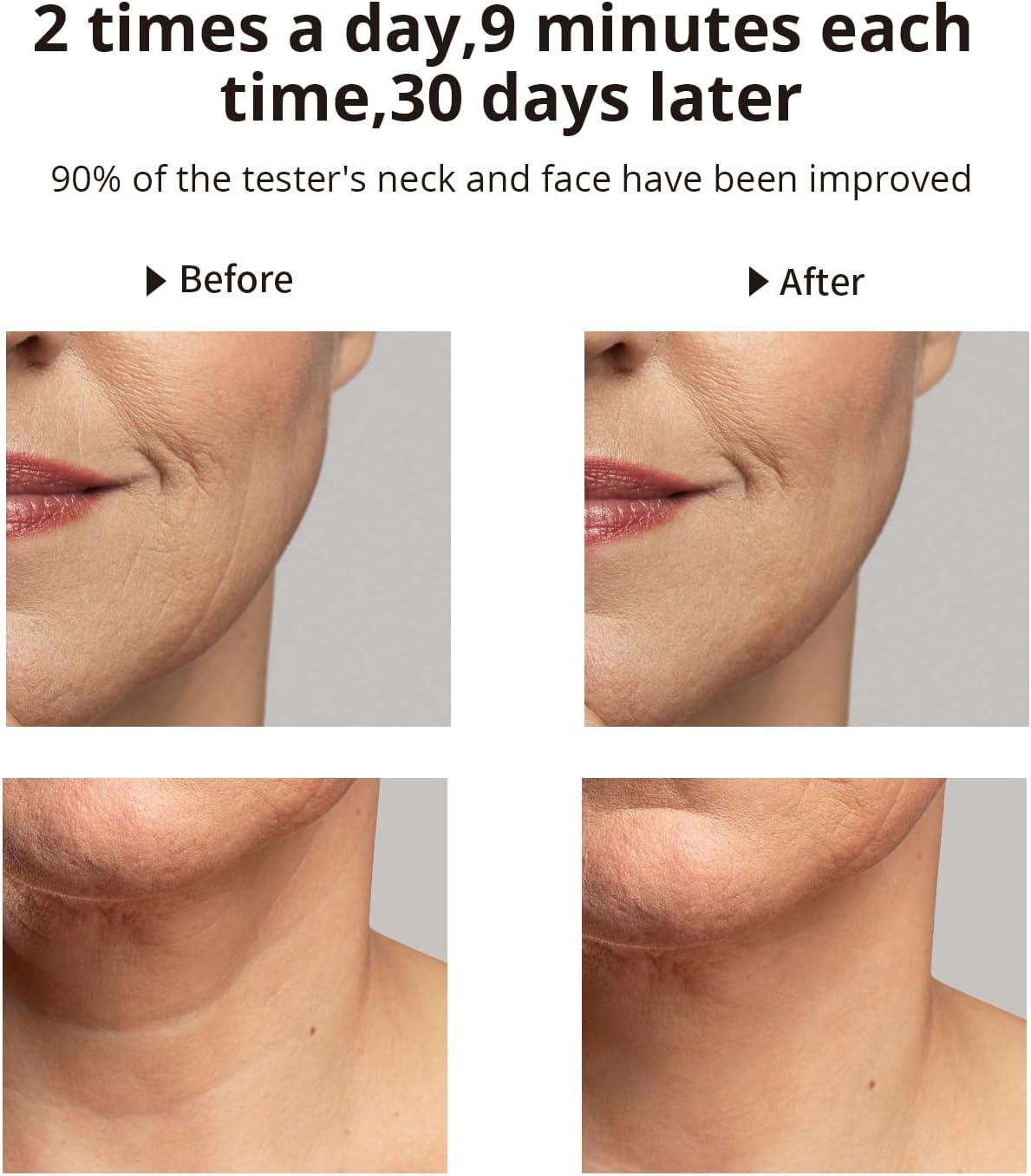 - 【3 Modes Face Neck Massager】-The face massager is based on four action LED, heating, cooling and vibration technologies. 3 modes are normal/cold/hot modes that switch automatically every 3 minutes, which effectively promotes the absorption of skin care products to maximize.