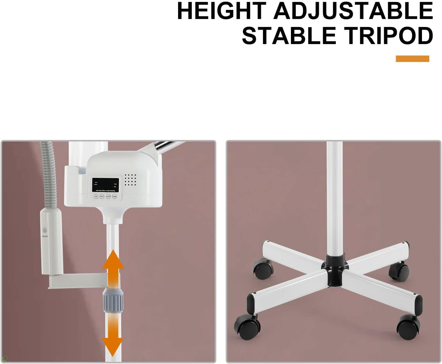 - Easy To Use - Facial steamer machine with 4-leg wheeled stable stand base that allows you to move around in the salon freely. Flexible arm can rotate left and right with 360 degrees and flip up and down 180 degrees. High adjustable from 40"-48"