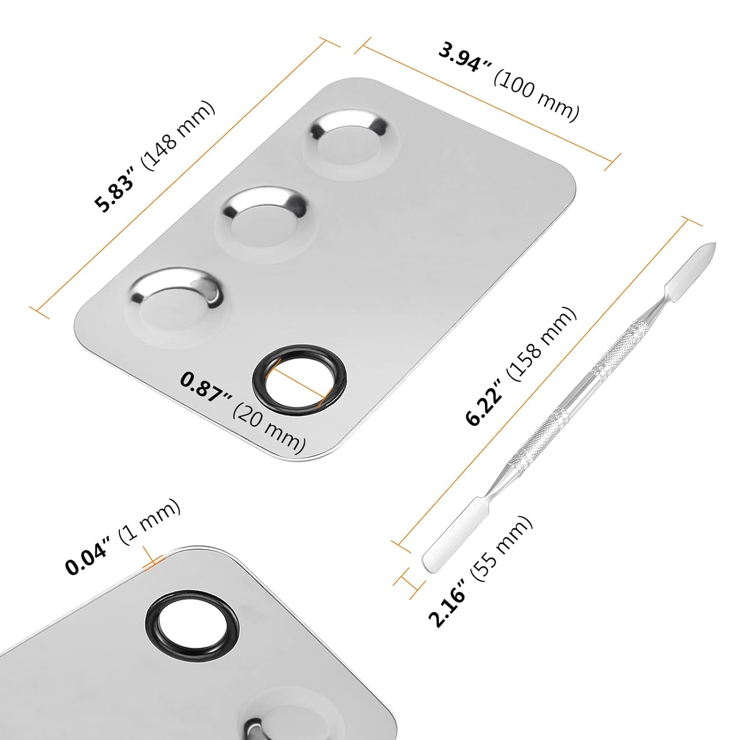 - VERSATILE TRAY - These work wonderfully as makeup mixing palettes, but also for nail products, such as mixing poly gel, builder gel, and polish colors together, or mixing them with glitters, sequins, etc. They are also wonderful for mixing skincare products together, such as beauty oils, moisturizers with oils, etc.