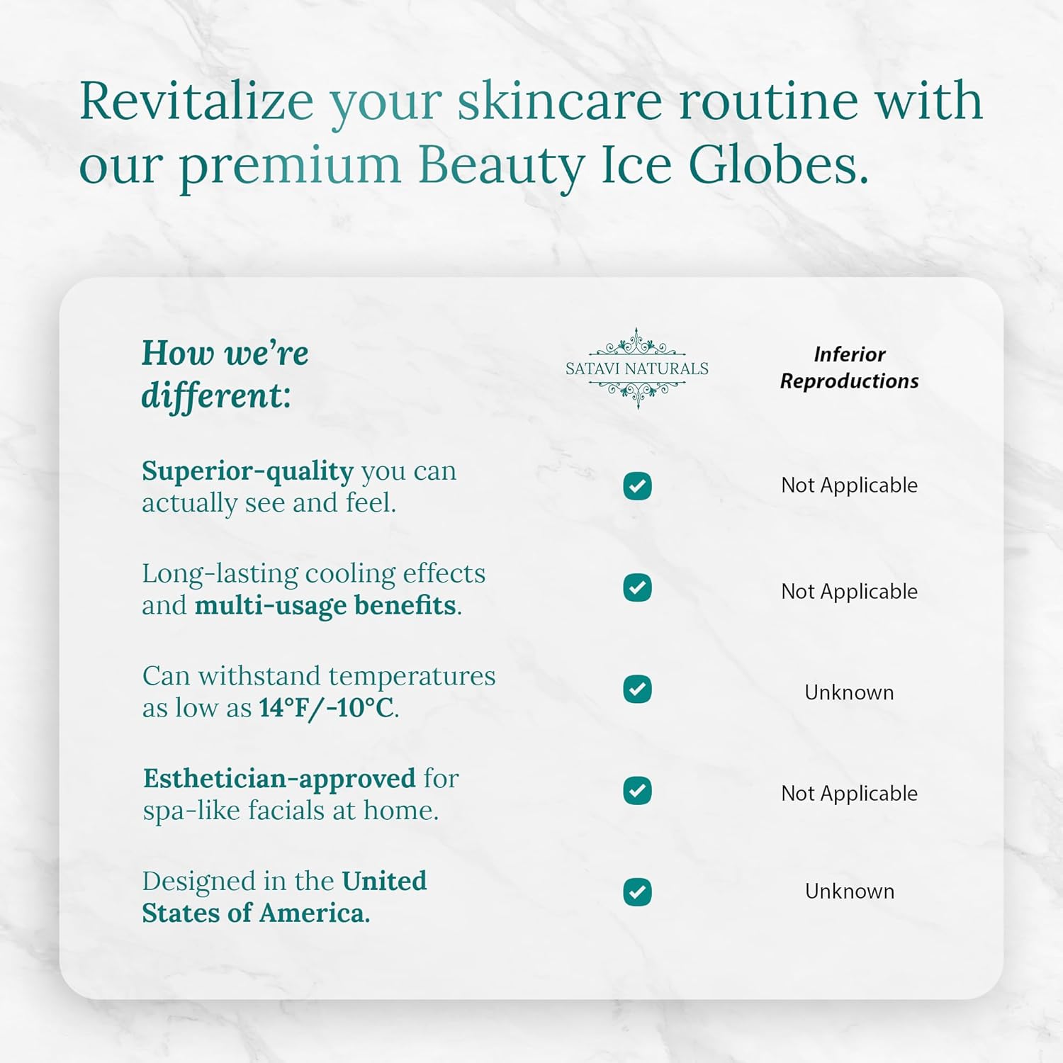 - Soothing Facial Treatment: Experience the ultimate rejuvenation for your skin with Satavi Naturals' exquisite Beauty Ice Globes. Part of our Home Spa Collection, these professional-grade esthetician facial tools offer a spa-like experience in the comfort of your own home.