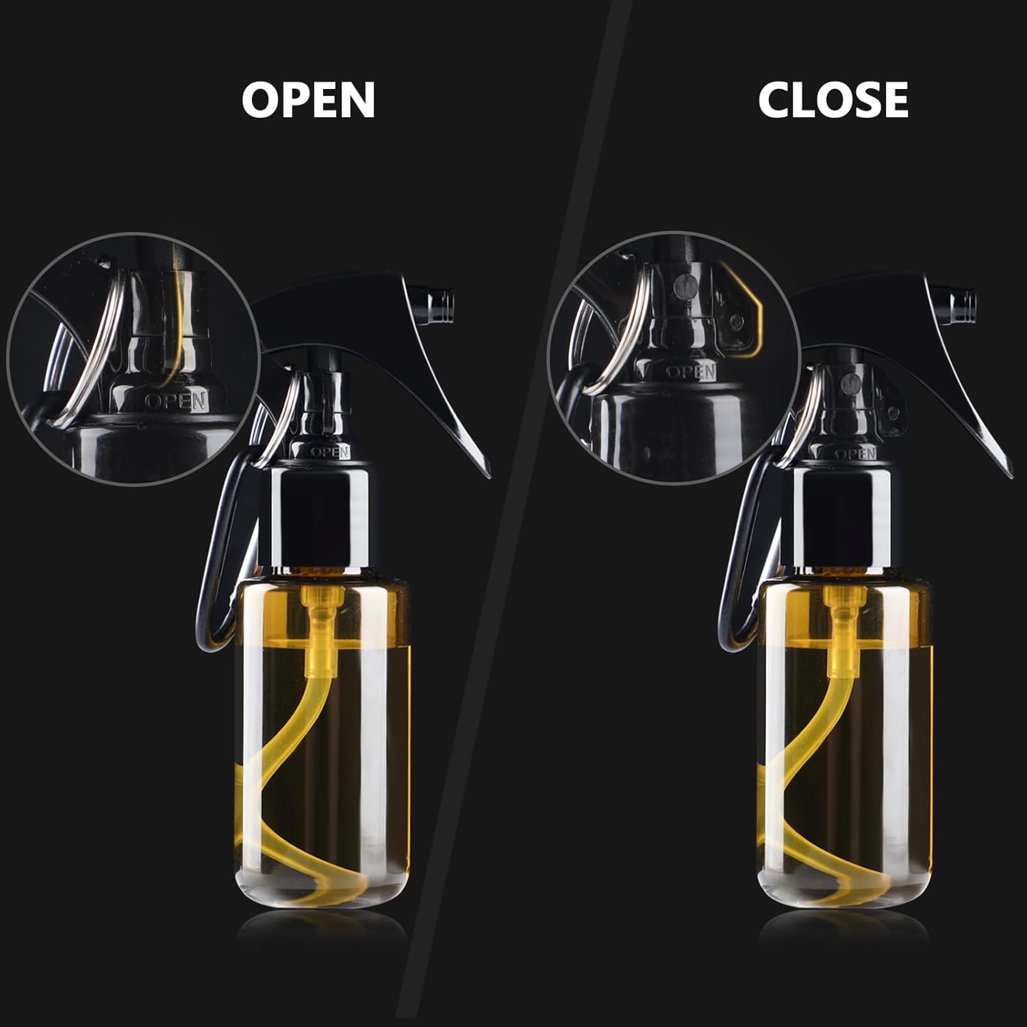 - Travel Lock No Leak Design:Tanshine mini spray bottle designed with leak free spray head with open and lock switch. Just turn the bolt to the "open" when using it,and rotate 90° to close it