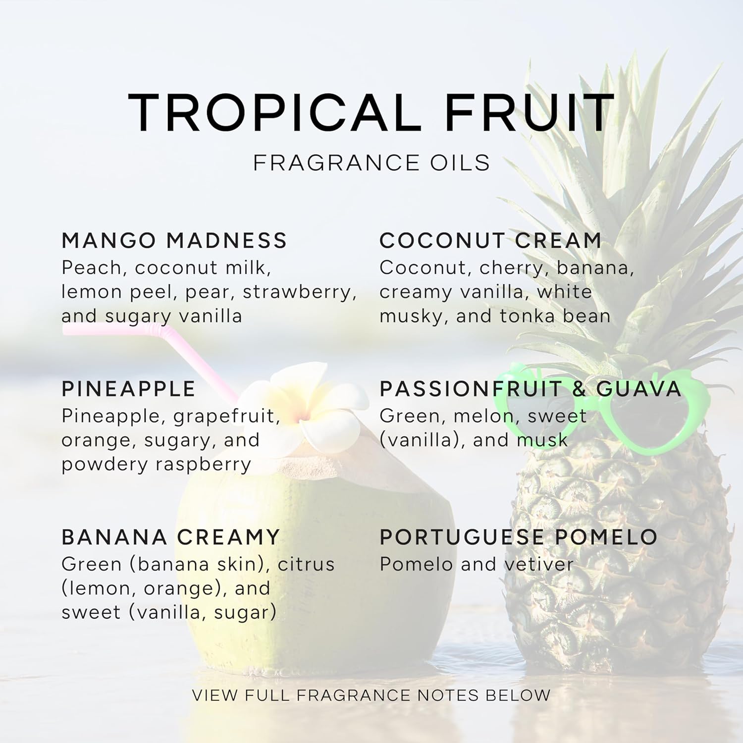 Eternal Essence Oils Tropical Fruit Set of 6 Premium Fragrance Oils - Includes Mango, Coconut Cream, Pineapple, Passion Fruit & Guava, Banana and Portuguese Pomelo Scented Oils - 10ML