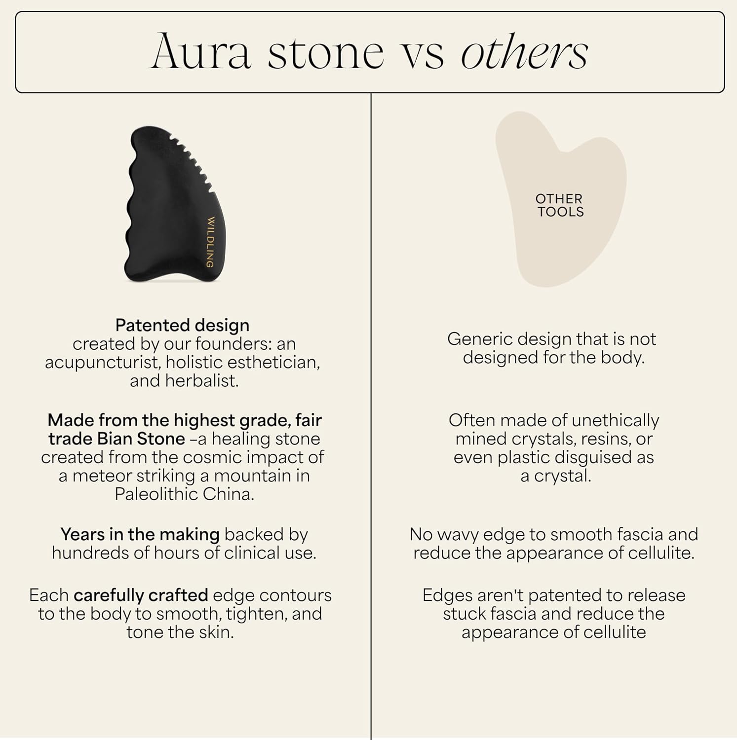 - Wildling's patented body gua sha stone designed to tone, tighten, smoooth, and sculpt the skin.