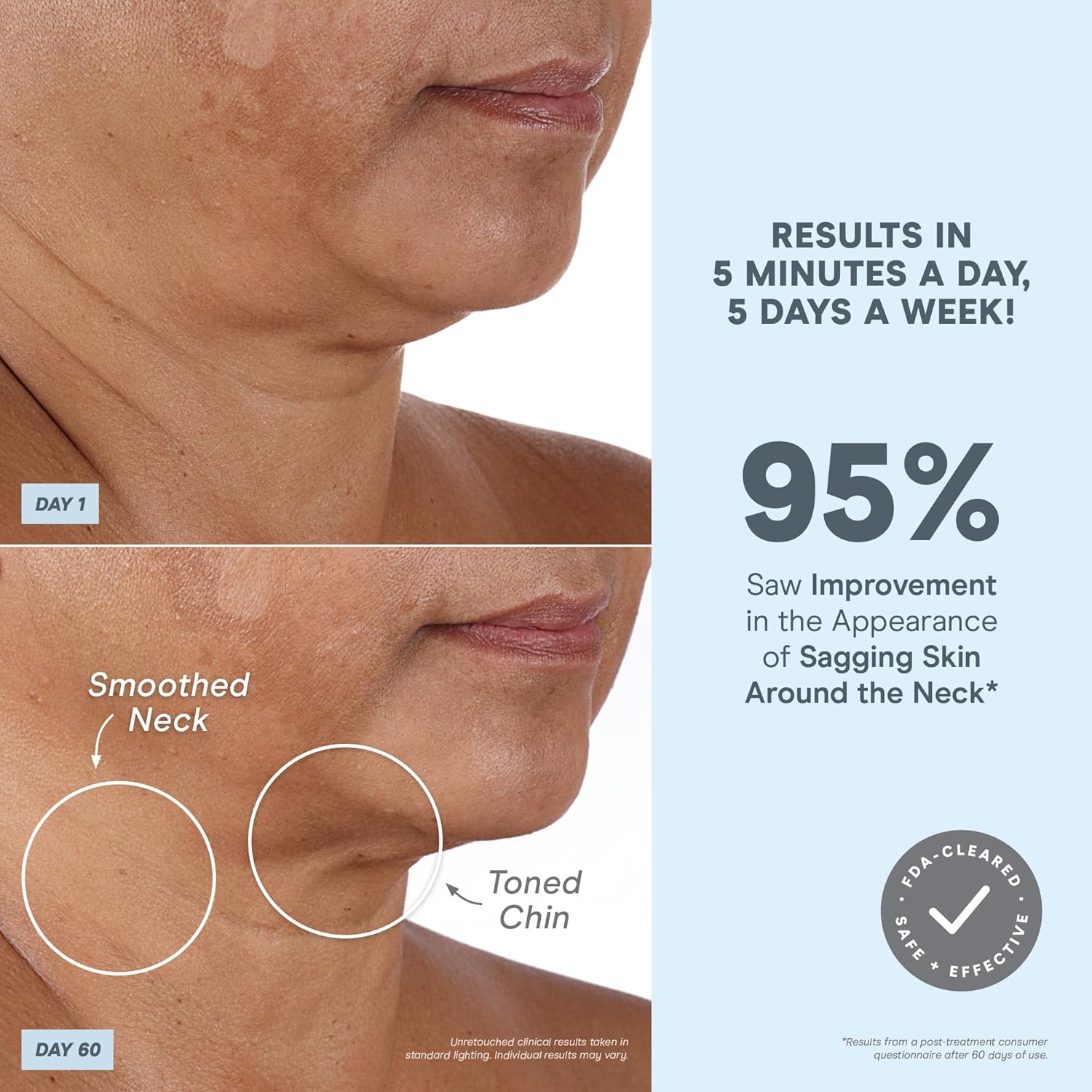 - Instant & Lasting On-The-Go Results - The petite and portable design of your NuFACE MINI+ facial toning device makes it perfect for on-the-go lifting. Quick 5-minute sessions throughout the week help to sculpt and firm the face & neck, improve cheek contour and lift brows. 95% of users say they saw improvement in the appearance of sagging skin around the neck, and 90% saw a more lifted jaw appearance.
