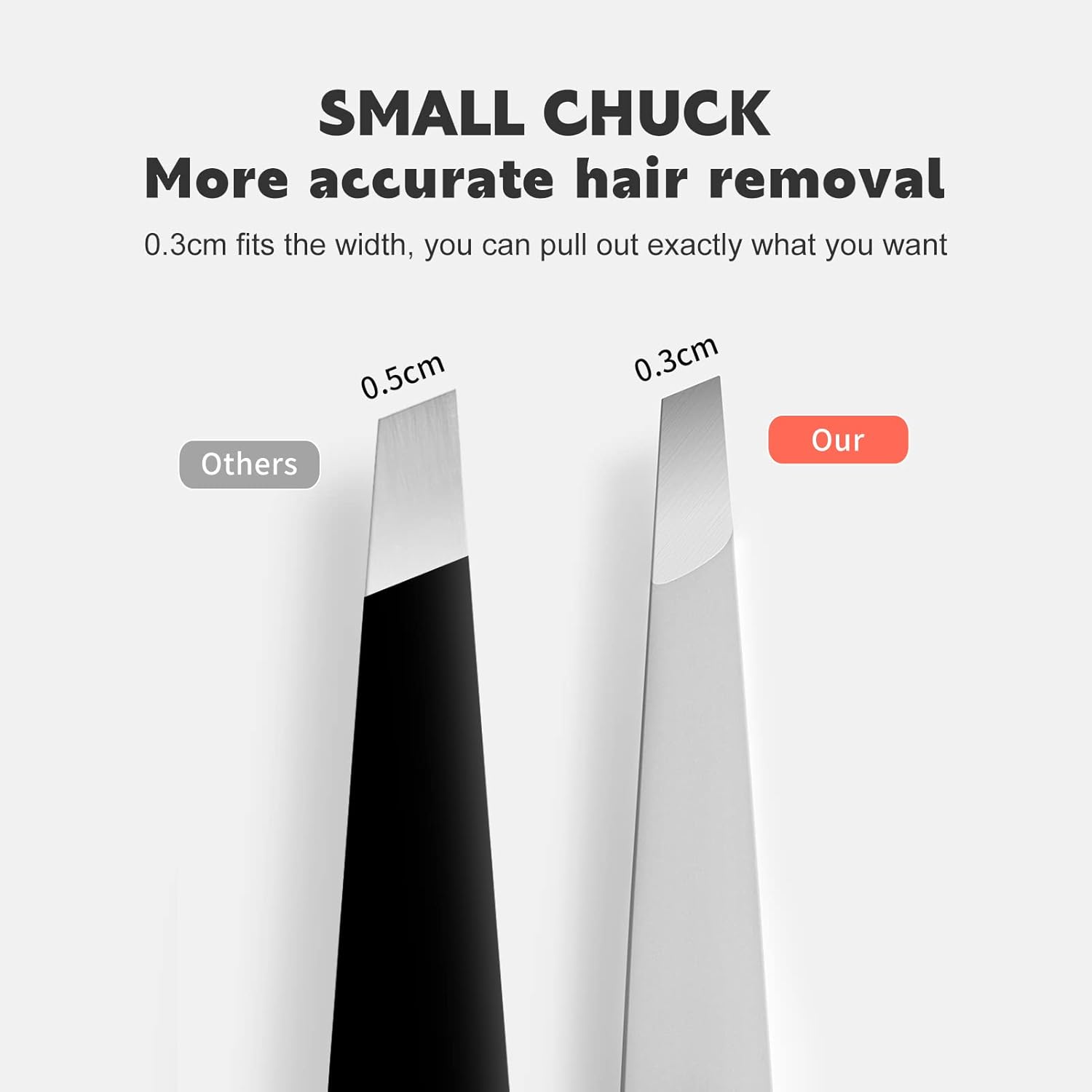 - 【𝗣𝗿𝗲𝗰𝗶𝘀𝗲, 𝗪𝗲𝗹𝗹 𝗔𝗹𝗶𝗴𝗻𝗲𝗱 𝗧𝘄𝗲𝗲𝘇𝗲𝗿𝘀】 The tips of the internal tweezers are etched so they will not slip off or break the hair. Grab and pull the hair from the roots easily, effortlessly every time! The tweezers have an additional tip protection device to ensure that the tips of the tweezers remain perfectly aligned between uses