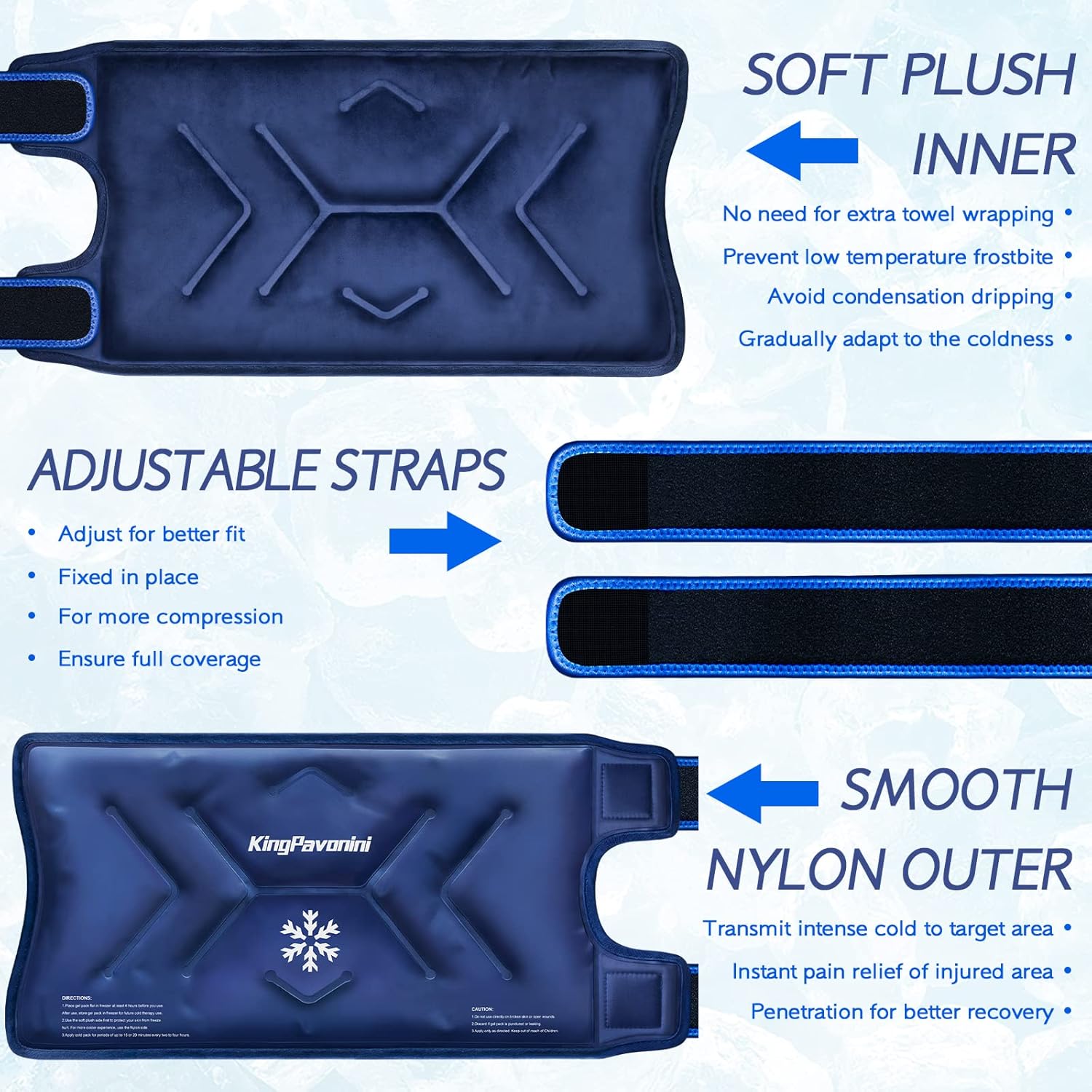 - Plus Size Knee Ice Wrap: Measures 19"X10.6" with 24.8" elastic straps, large ice wraps for knee ensures a full coverage for your knees, which is available for knee circumference up to 19". Two adjustable straps make gel ice pack more fit your knee and add compression, securing in place to free your hands.