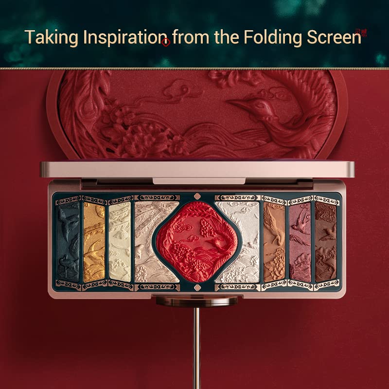 - Chinese Aesthetics: Taking inspiration from the folding screen, deeply rooted in Chinese art and culture, we engraved delicate patterns taken from the myth "All Birds Paying Homage to the Phoenix" on a miniature folding screen that forms the eyeshadow palette in a beautiful three-dimensional work of art.
