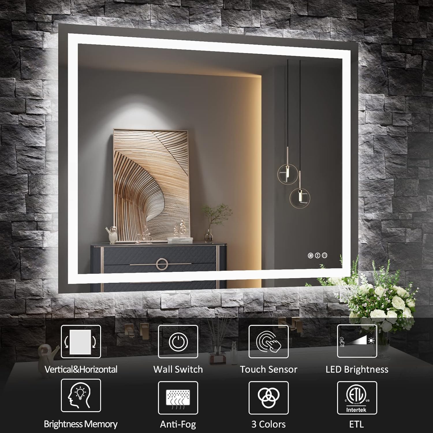 - [Double Lights & Super Bright]: With two built-in LED strip lights, Amorho LED bathroom mirror with front light and backlit both; The lighting is bright enough for makeup or shave or beauty care in your space