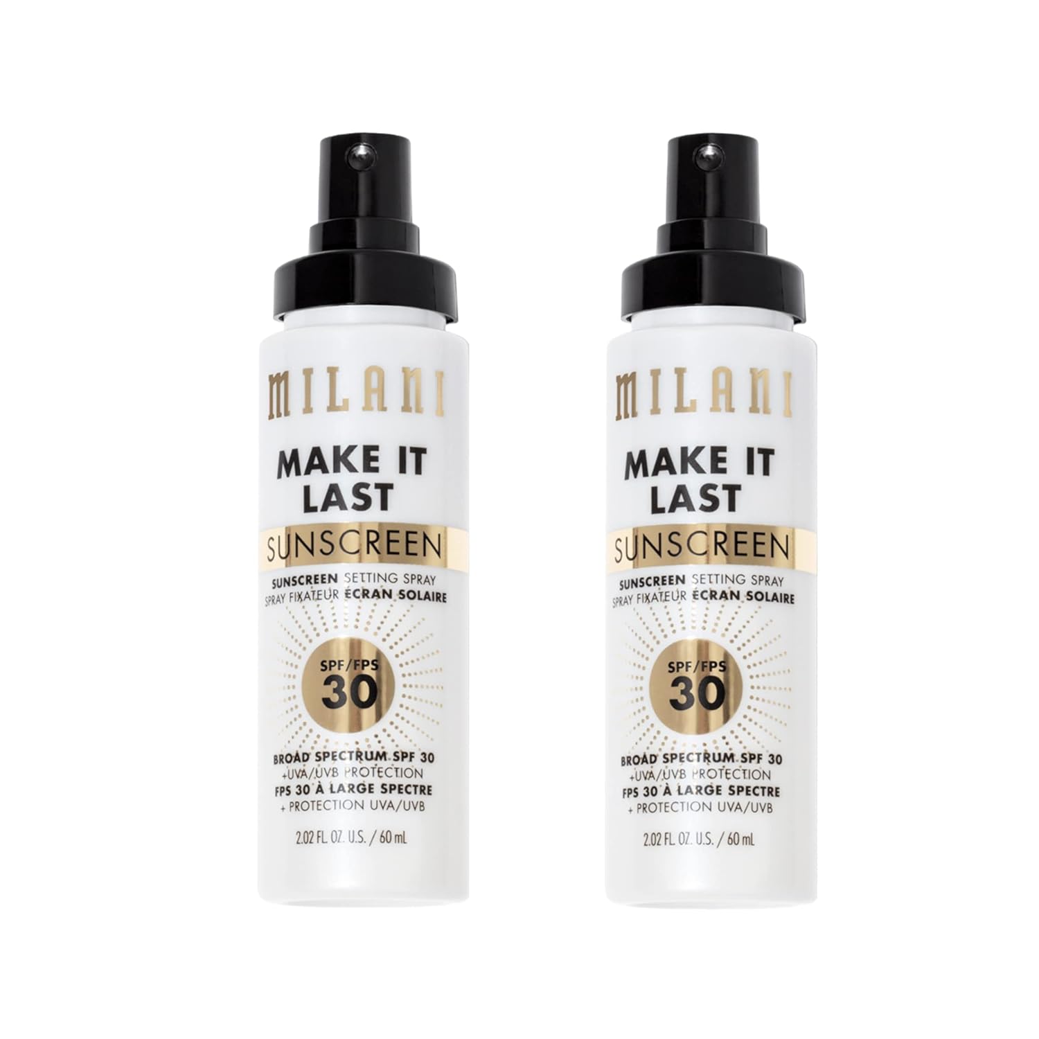 Milani Sunscreen Setting Spray + Primer, Make It Last Sunscreen for Face- SPF 30 UVA & UVB Protection Antioxidant Rich Formula for Broad Spectrum Protection, Prime + Set + Protect, 2.02Fl. Oz - 2 Pack