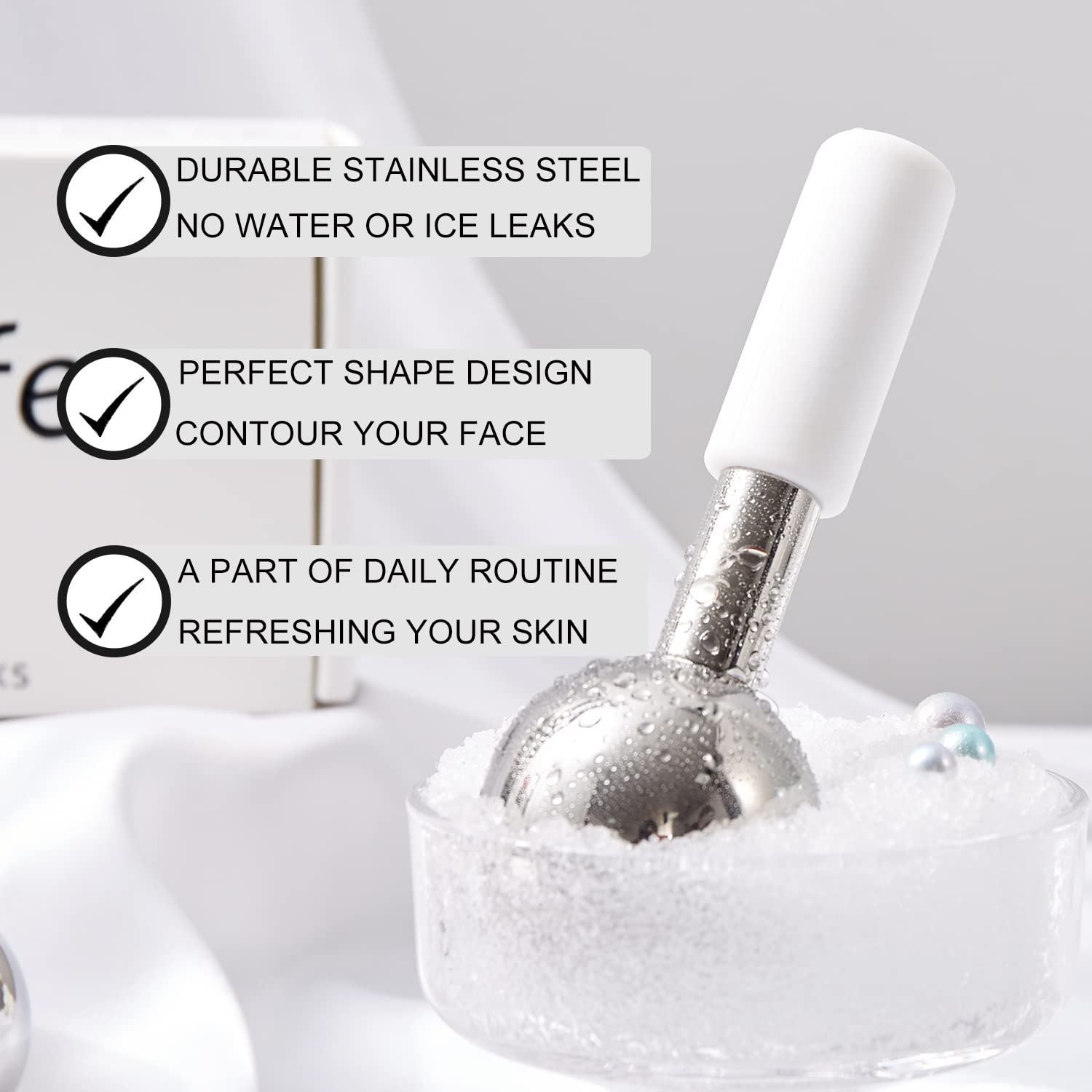 Ice Globes for Face & Eyes, Unbreakable Stainless Steel Cryo Sticks for Beauty Routines, Facials Cold Roller Cooling Globes for Puffiness, Wrinkles, Dark Circles, Headaches