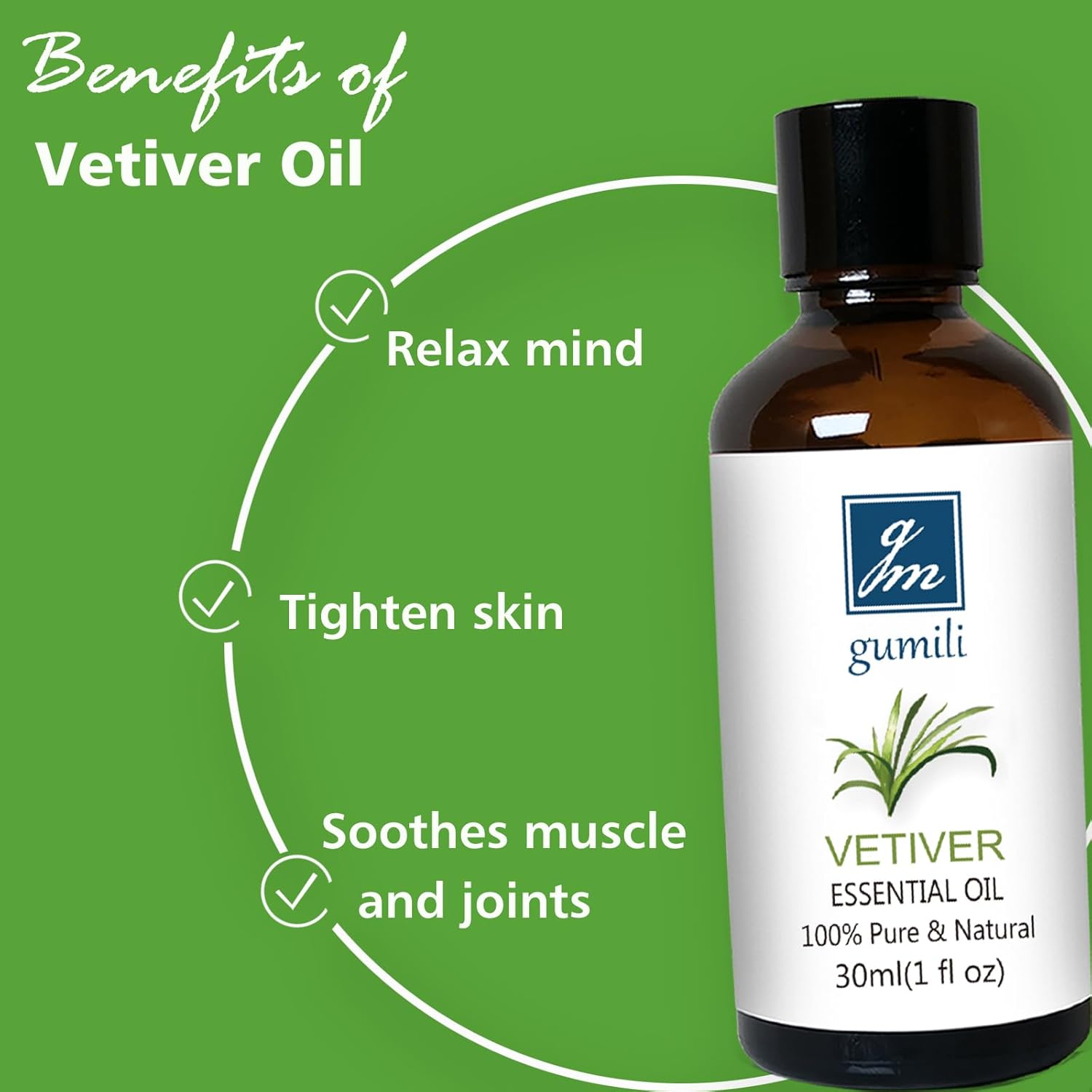Vetiver Essential Oil 1 Oz - 100% Pure & Natural Vetiver Oil for Diffuser, Aromatherapy, Skin, Hair, Massage, Relaxing Scent
