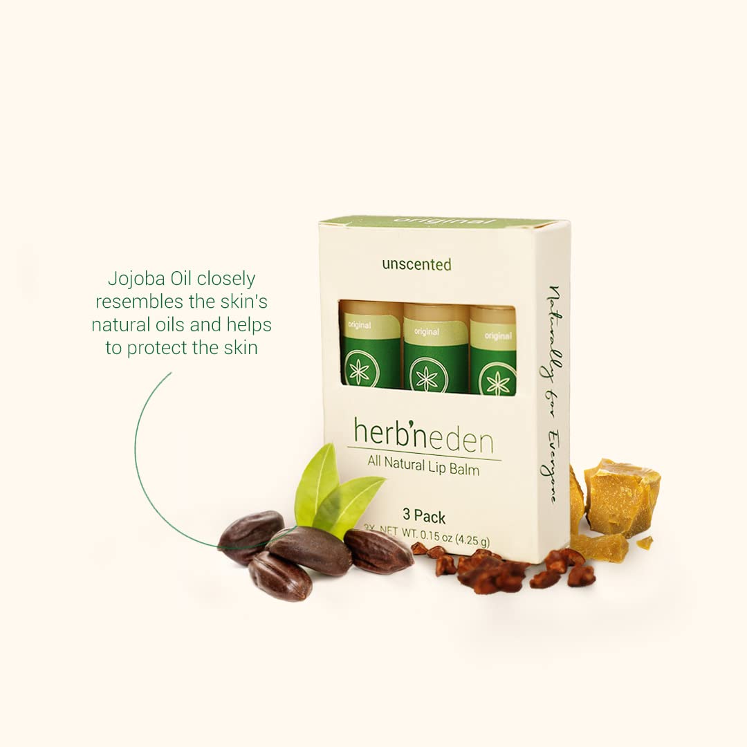 Herb’N Eden Original Lip Balm Pack of 3 | Moisturizing and Soothing for Dry, Chapped Lips | 100% Natural Ingredients | Essential Oils