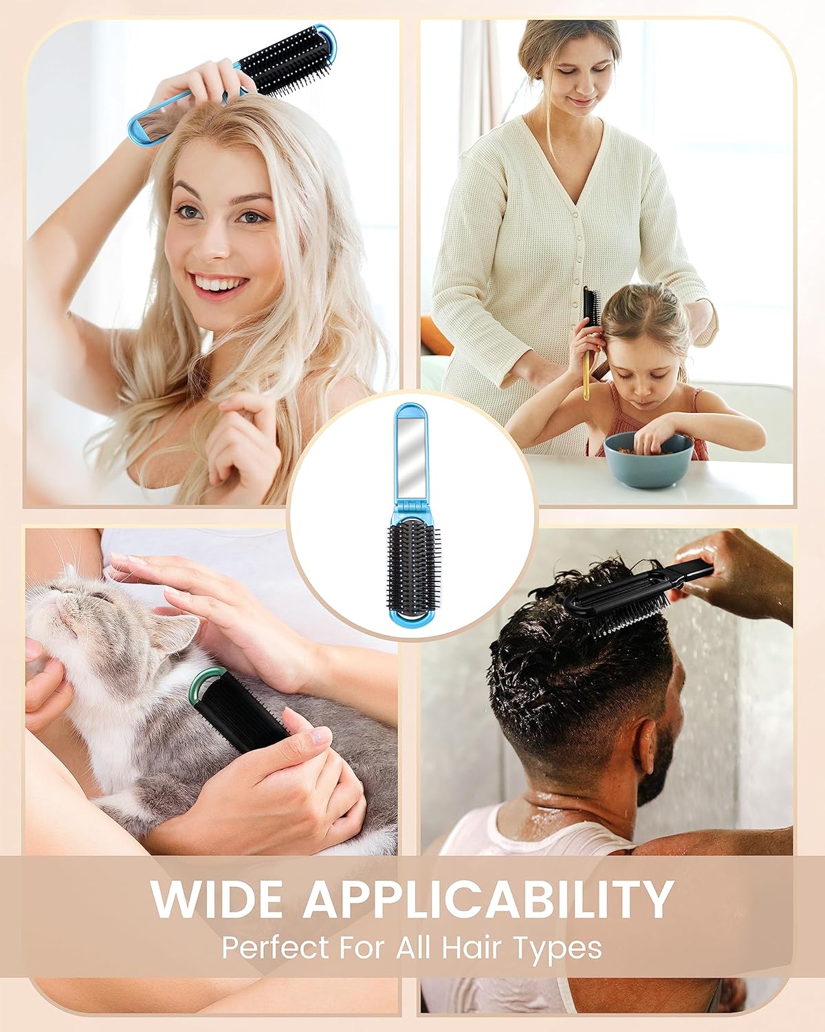 - Suitable for Various Hair Types: Foldable hair brush suitable for most types of hair - thick, thin, curly, straight, dry, wet, extensions and wigs; it is suitable for most age groups, both men and women, for left-handed and right-handed people