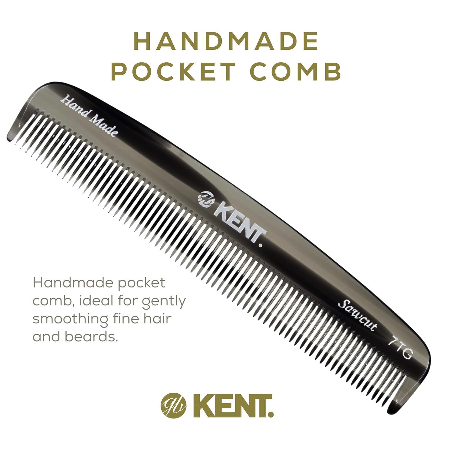 Kent 7T Black Graphite All Fine Tooth Pocket Comb for Men - Handmade Hair Comb for Men for Everyday Grooming and Styling - Travel Comb for Hair Care, Mustache and Beard Care, Saw Cut and Hand Polished