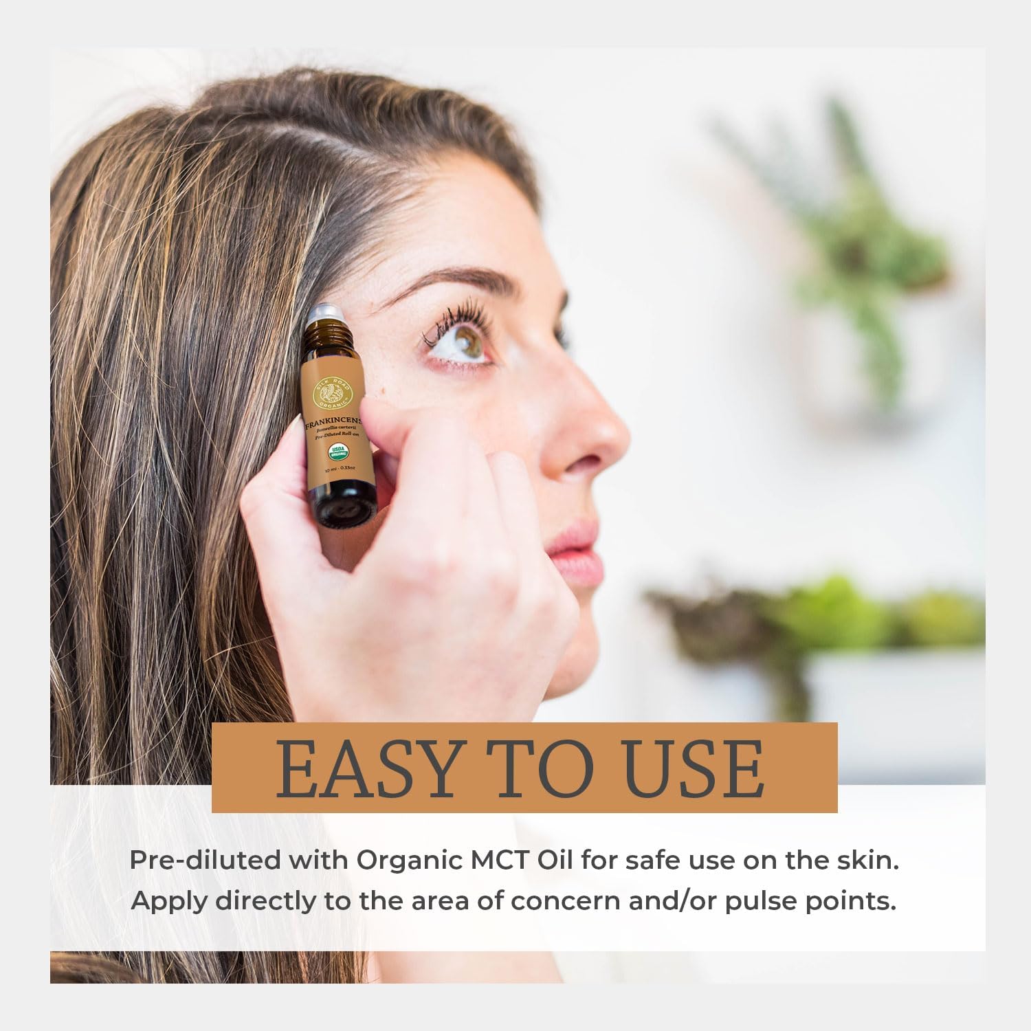 Silk Road Organic Frankincense Carterii Essential Oil Roll On, 100% Pure USDA Certified Aromatherapy for Radiant Skin, Body Aches, Stress Relief, & Calm - 10 ml Roller