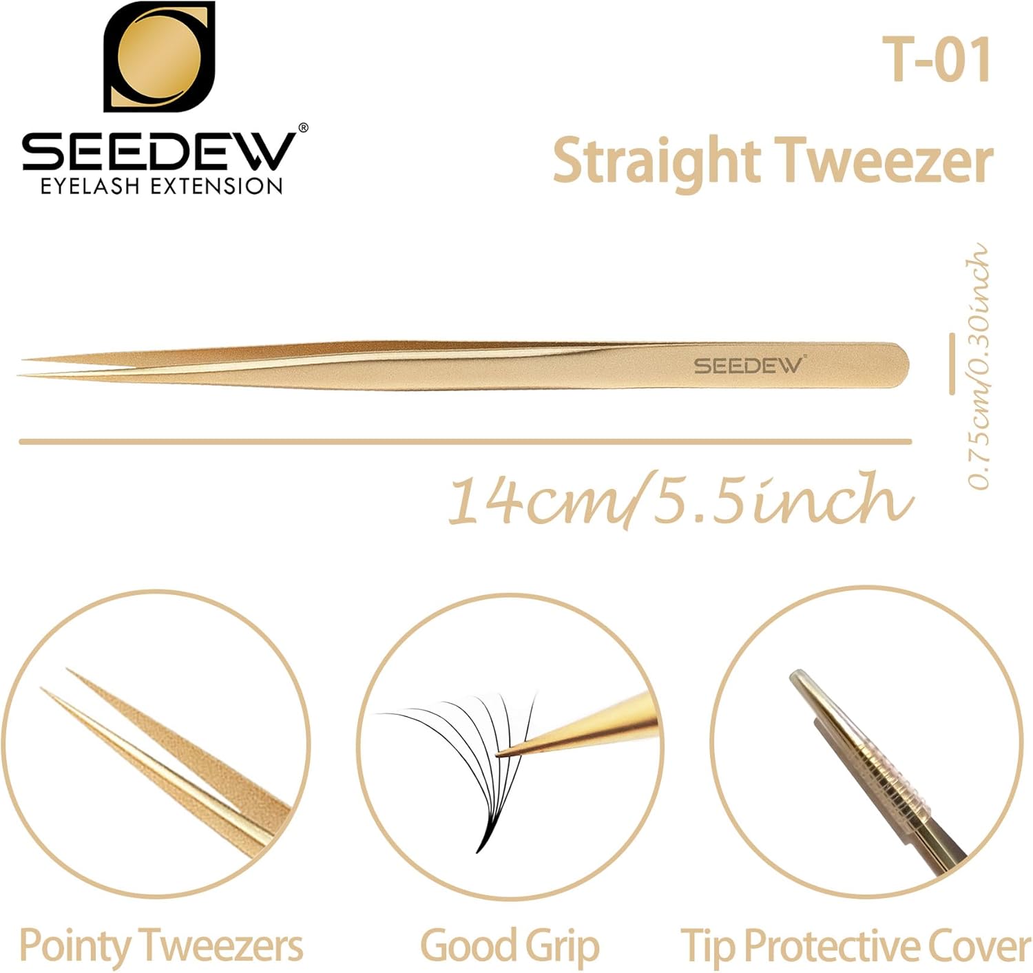 - âăPremium And ClassicăSEEDEW stainless steel golden tweezers have texture, smooth surface, classic and elegant style. 1 piece tweezer is equipped with a cover for the tip of the tweezer and a protective case, which is safe for storage, dustproof, dropproof, and imitation of poking.