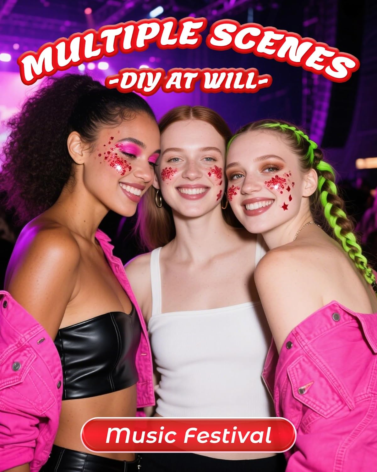 - EASY APPLICATION, NO MESS: No glue needed! This self-adhesive Red Body Glitter gel applies smoothly with fingertips or a brush—so you can create stunning looks in seconds. Ideal for last-minute glitter transformations on your face, body, hair, or nails. Layer it for intense dimension or wear it lightly for a subtle gleam