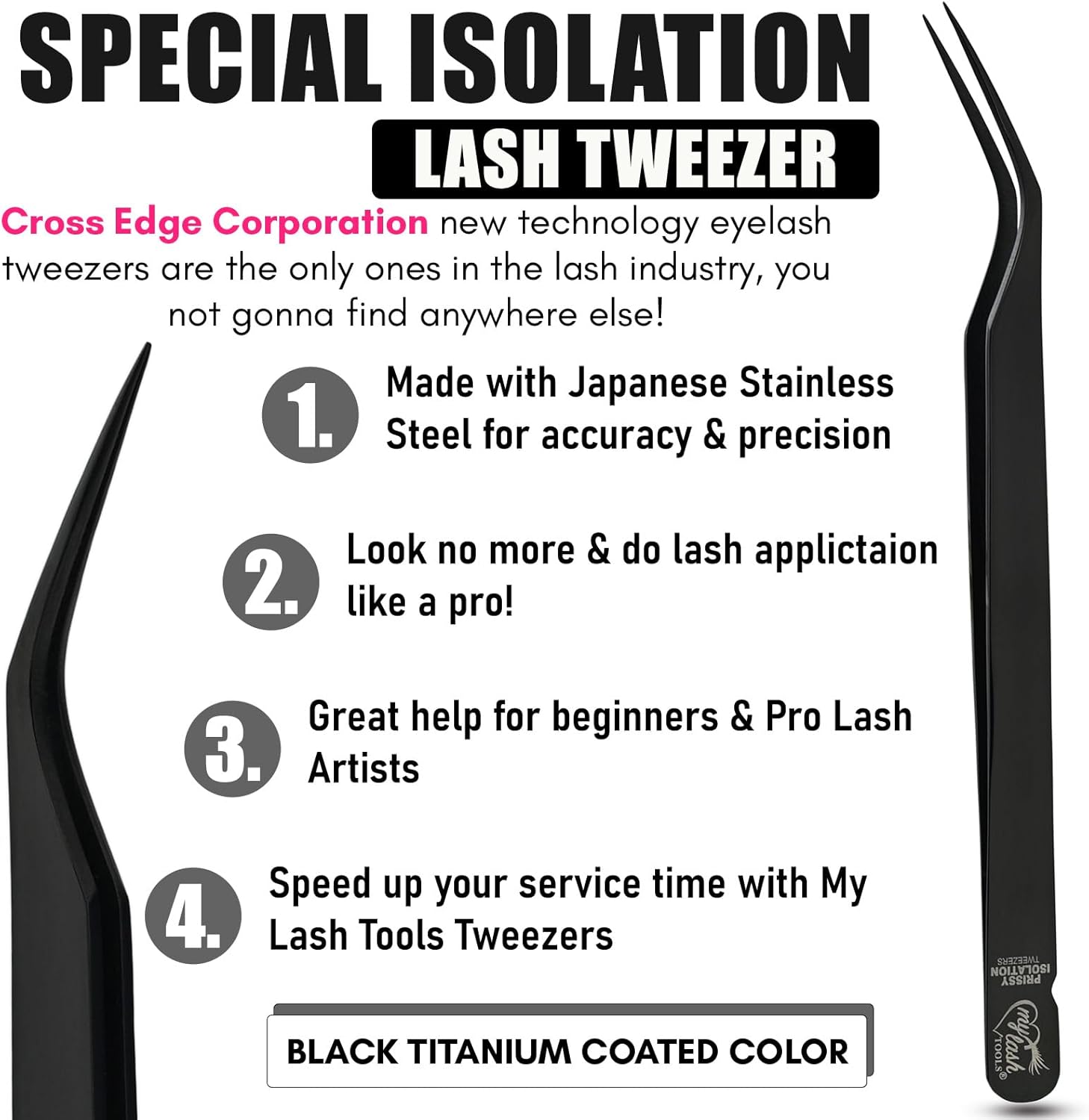 My Lash Tools New Isolation Lash Tweezers For Eyelash Extensions Best for Individual Isolation & Classic Lashes Japanese Stainless Steel Lightweight Precision Lashing Twisers (1pc, Black)