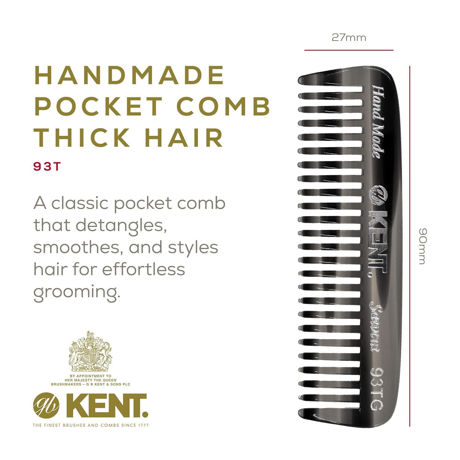 - This mens comb is a premium Kent comb, known for its durability, comfort and professional quality. The wide teeth glide through hair, detangling and styling with ease. It's the perfect addition to any men's grooming kit or beard kit for men.