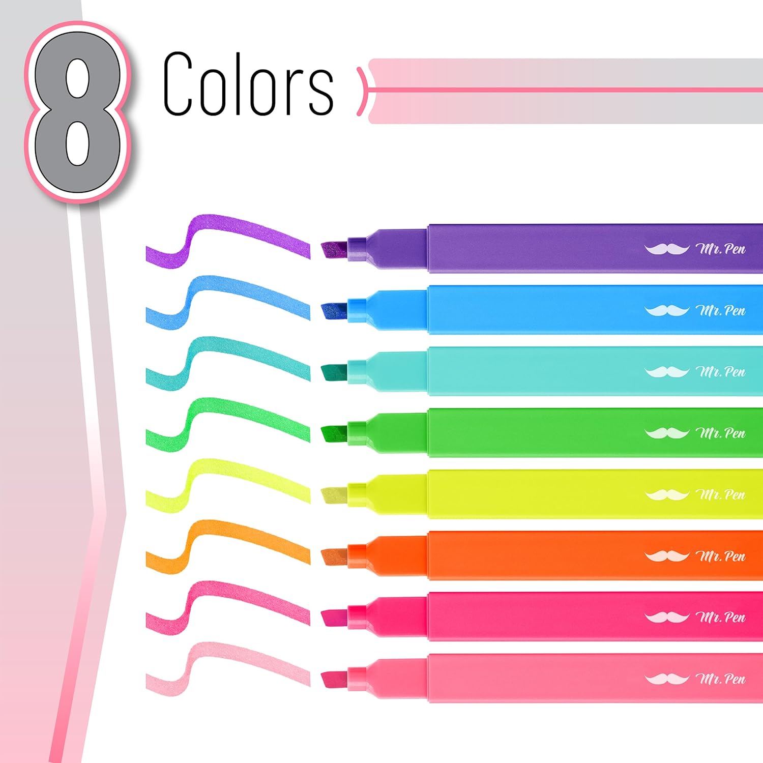 Mr. Pen- Aesthetic Highlighters, 8 pcs, Chisel Tip, Vibrant Colors, Cute Highlighters Assorted Colors, Back to School Supplies