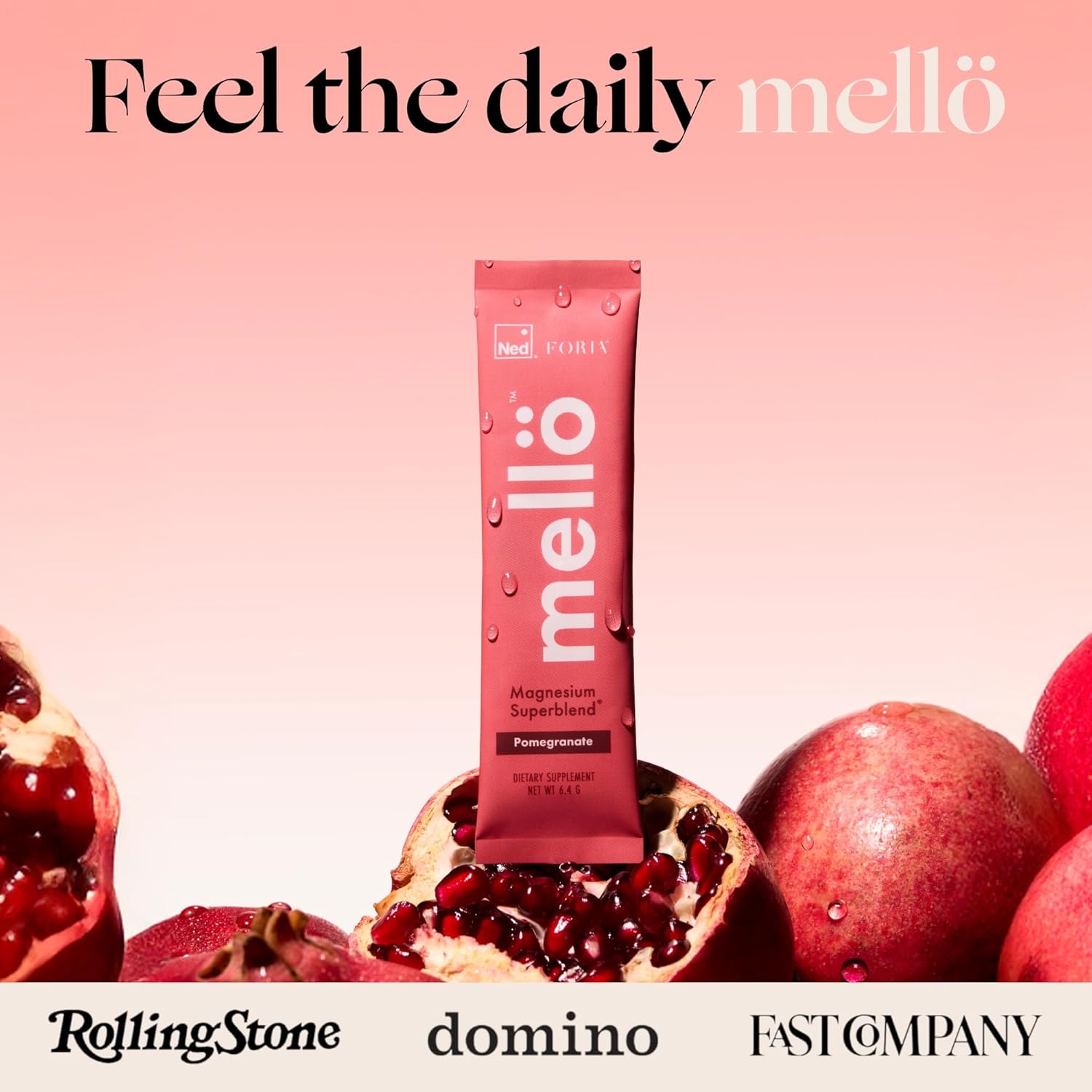 mellö Magnesium Supplement Superblend Powder - Magnesium Glycinate with L-Theanine, GABA, and Trace Minerals - Supports Sleep, Relaxation, and Balanced Energy - Pomegranate Flavor, 10-Pack, Singles