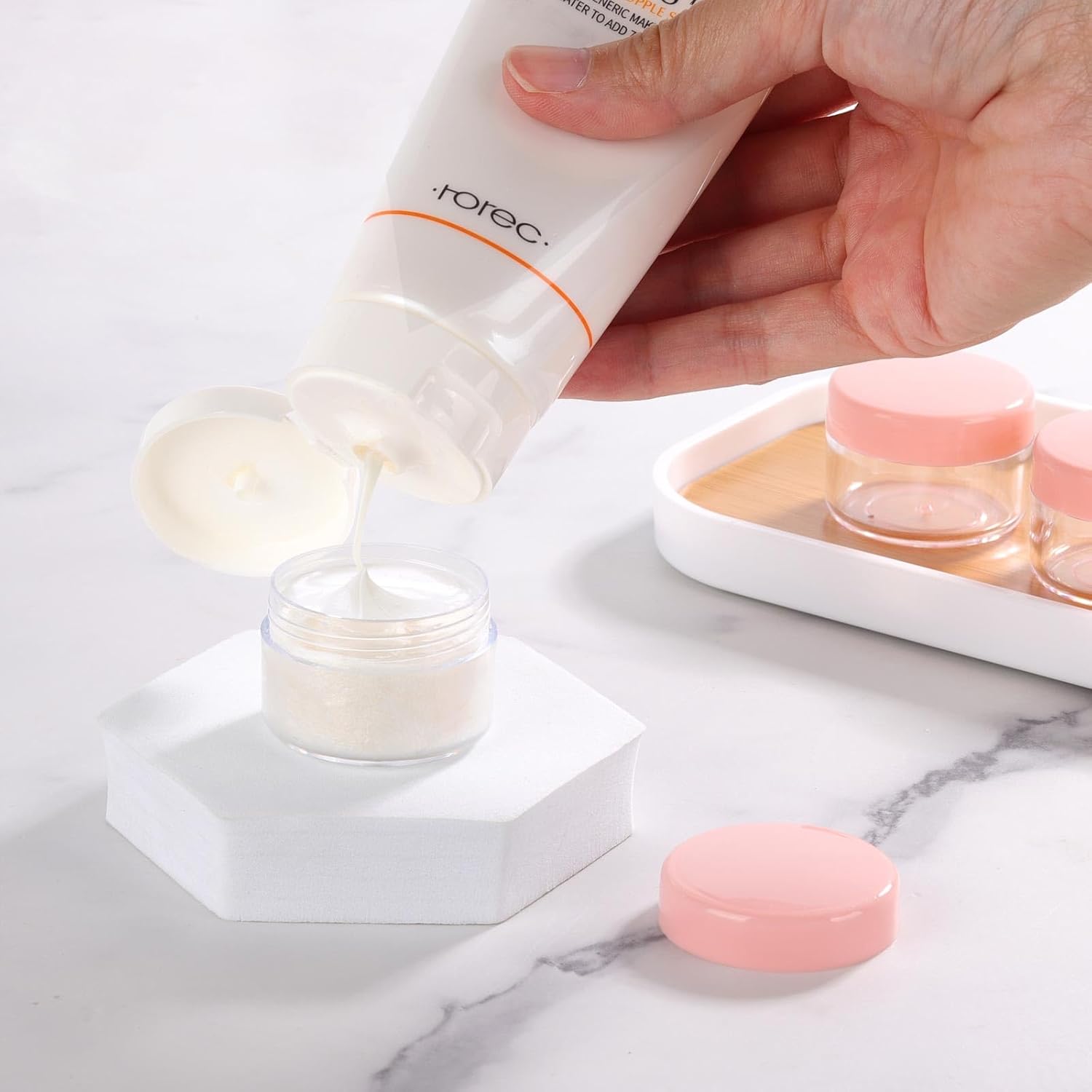 Refillable Cosmetic Sample Jars - 100 Pack 15g (0.5oz) Pink Small Travel Containers with Lids + 10 Mini Makeup Spatulas - BPA Free