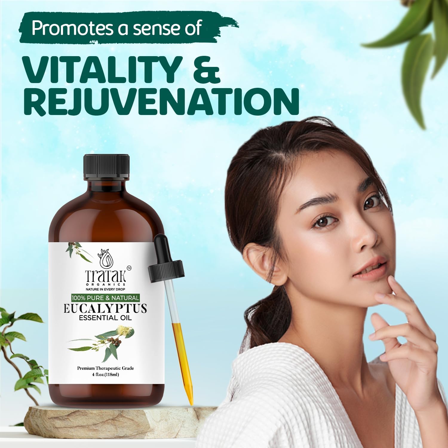 - PACKAGE INCLUDES: Pack of 1 Tratak Eucalyptus Essential Oil with dropper, Net Weight: 4 Fl Oz