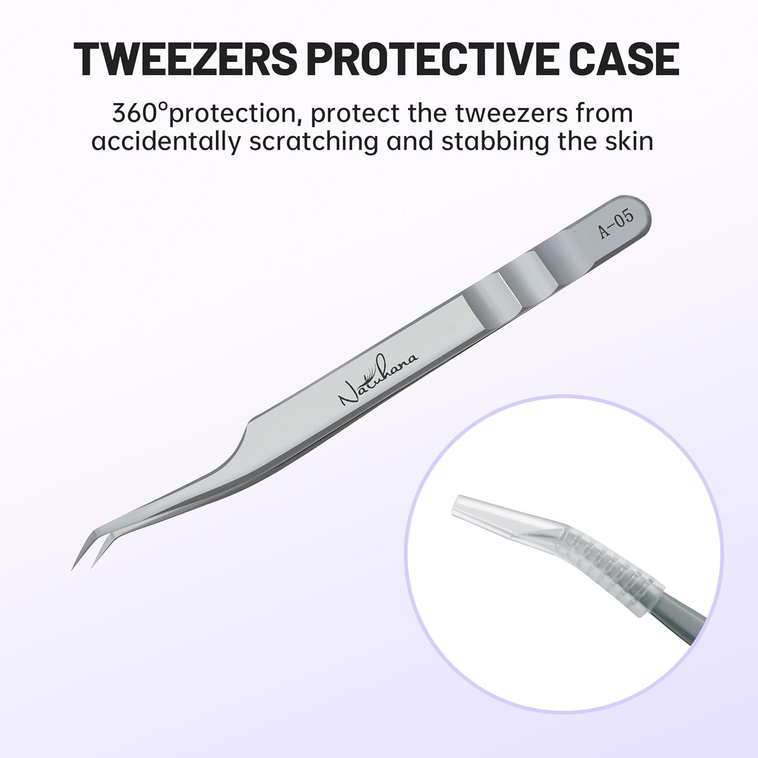 - ☪[Usage Safety]Our tweezers have protective case,bring a 360°protection,protect the tweezers from accidentally scratching and stabbing the skin.Another humanized design is its smooth grinding of corners,make it long-lasting grip without hurting or tiring hands. It is really a good helper for beginners to graft eyelashes.