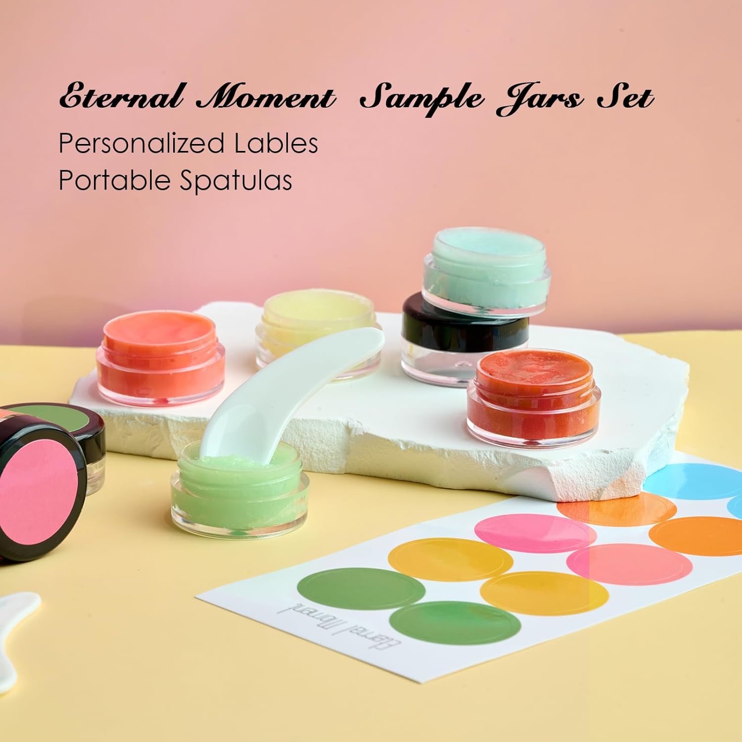 - ★【SUPER VALUE PACK】: You will get 50pack clear 3g/3mL plastic containers with black lids, 50pack colorful labels for distinction and 5 spatulas for dispensing or mixing, used for anything you want to store. Personalized stickers/labels are ideal for business and promotional goods.