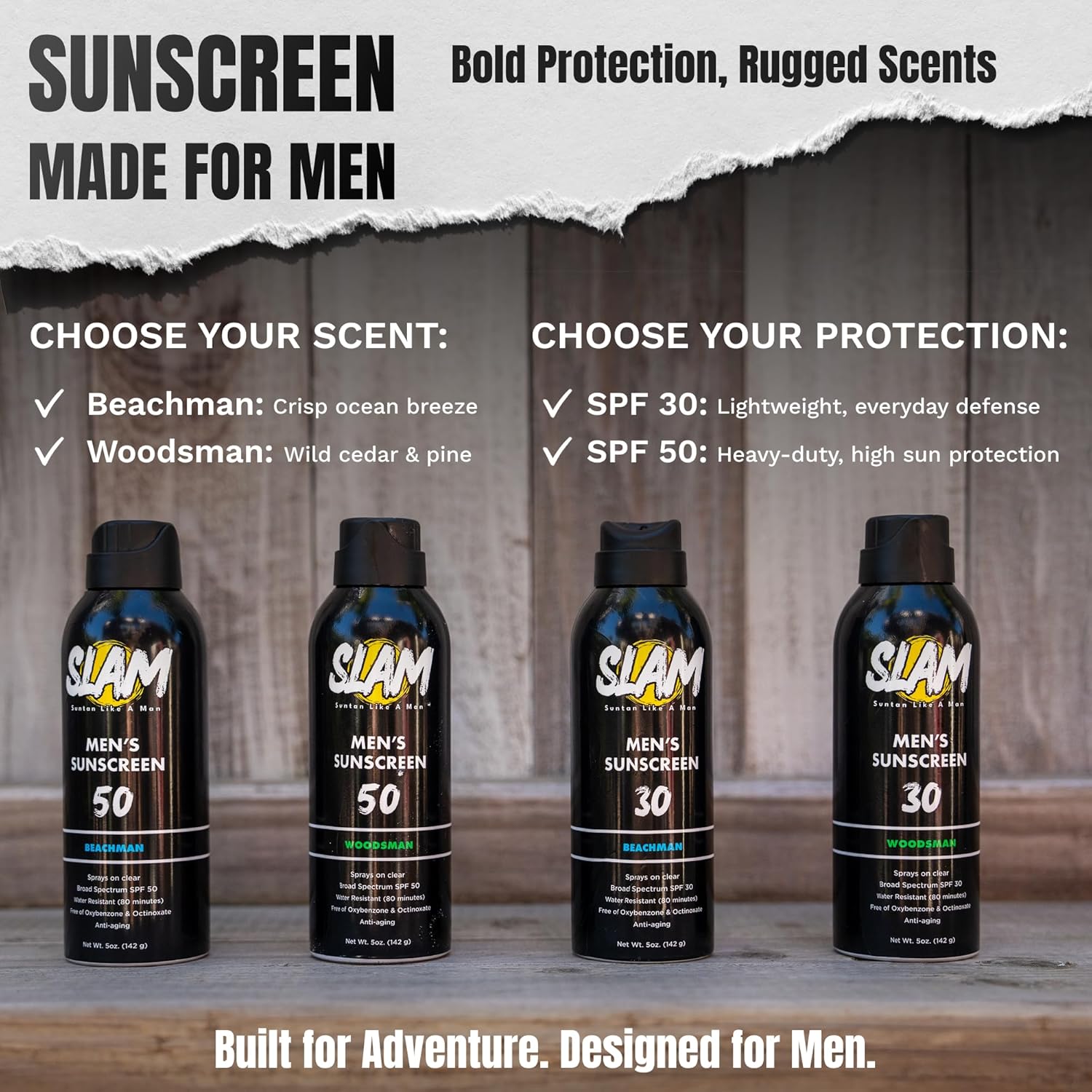 SLAM BeachMan Men's Scented Sunscreen Spray SPF 30 – Broad Spectrum Sun Screen for Face & Body, Water & Sweat Resistant Spray Sunscreen SPF 30, UVA/UVB Protection, Mens Sunblock