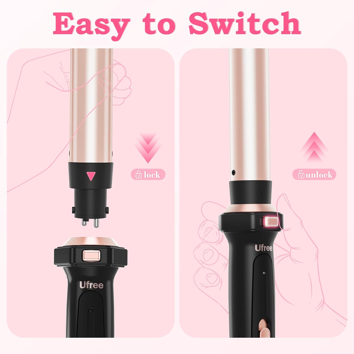Ufree 5 in 1 Curling Iron with Interchangeable Ceramic Barrels (0.35"-1.25"), Curling Wand Set with Flat Iron Hair Straightener, Instant Heat Up, Dual Voltage Hair Curler, Gifts for Women